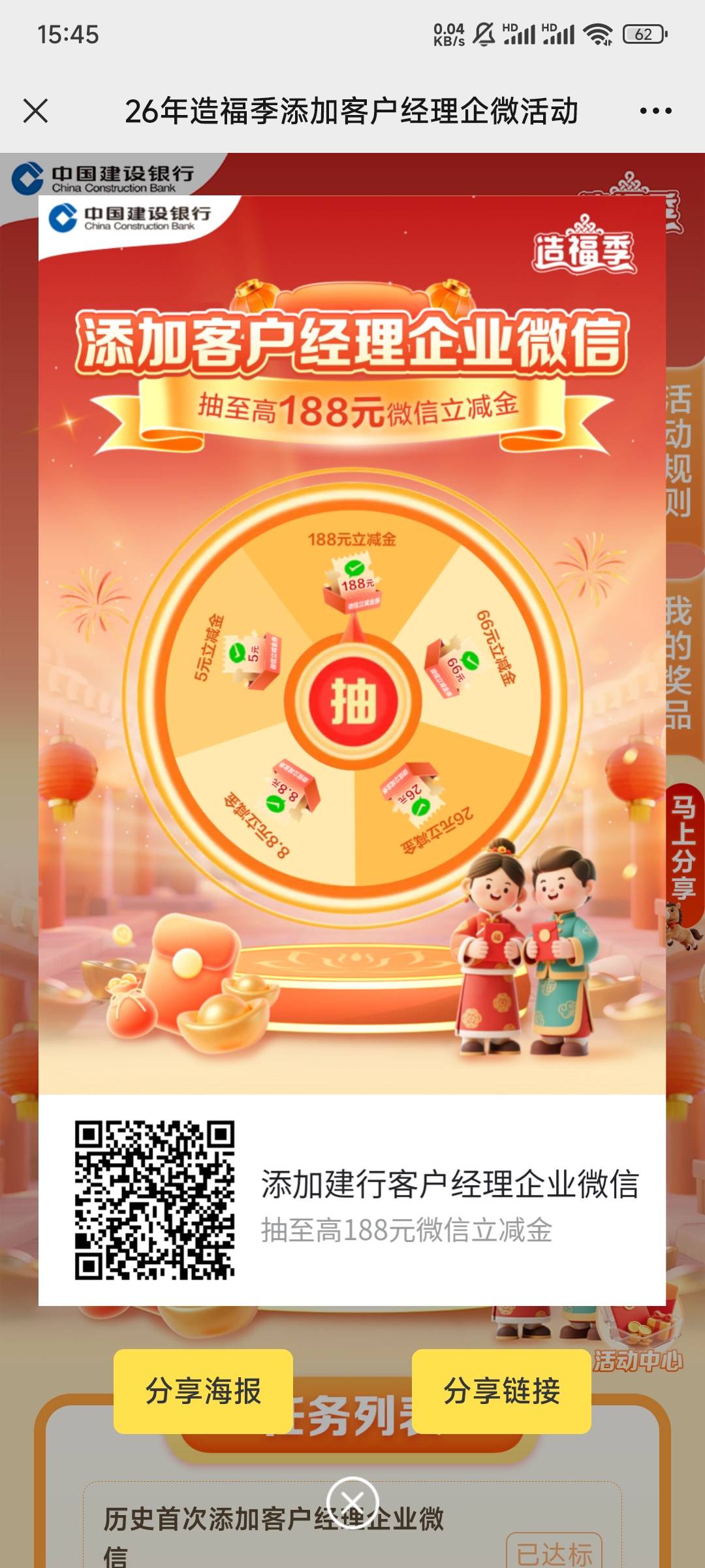 建设银行添加企微客服抽奖至高188