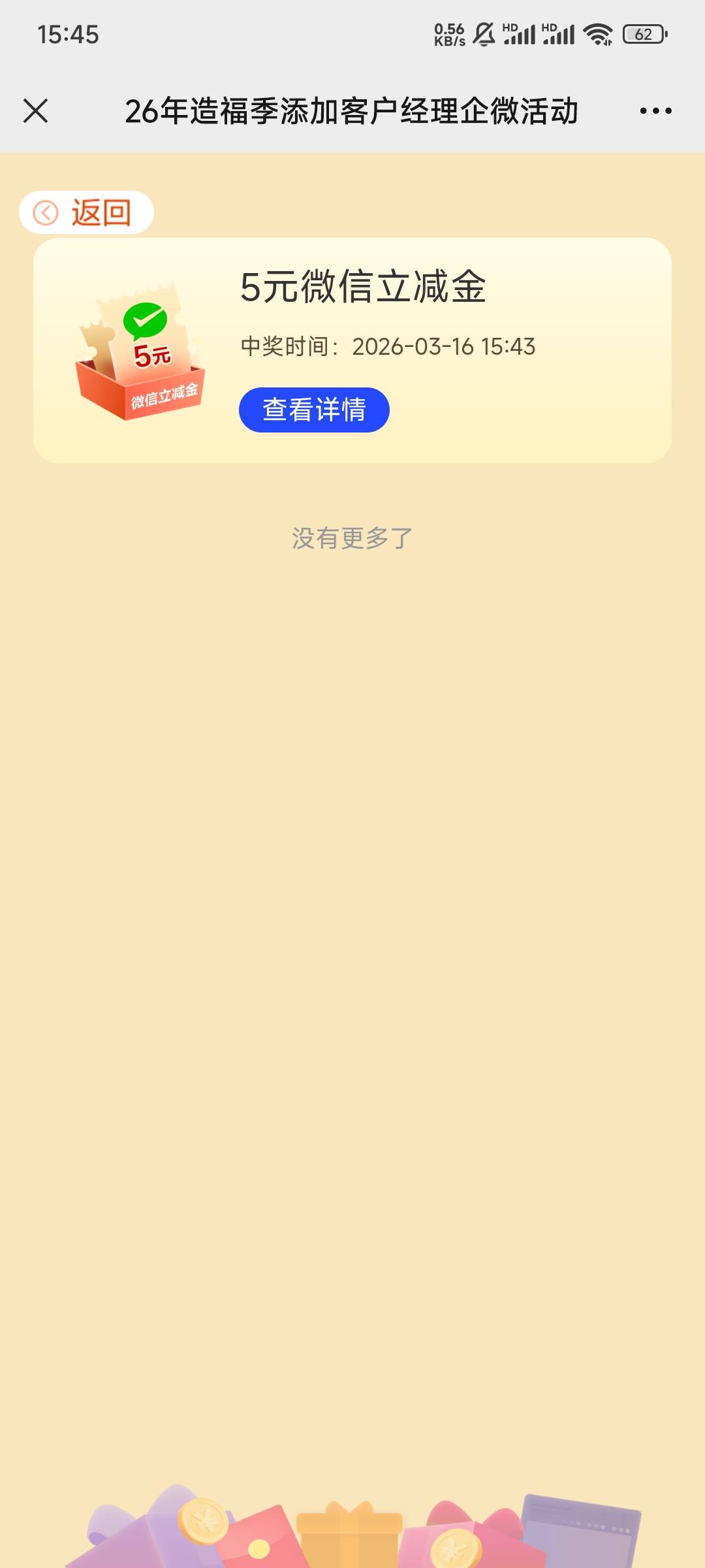 我进去就直接完成任务➕抽奖机会,根本没添加客服 中5立减@卡农阳阳