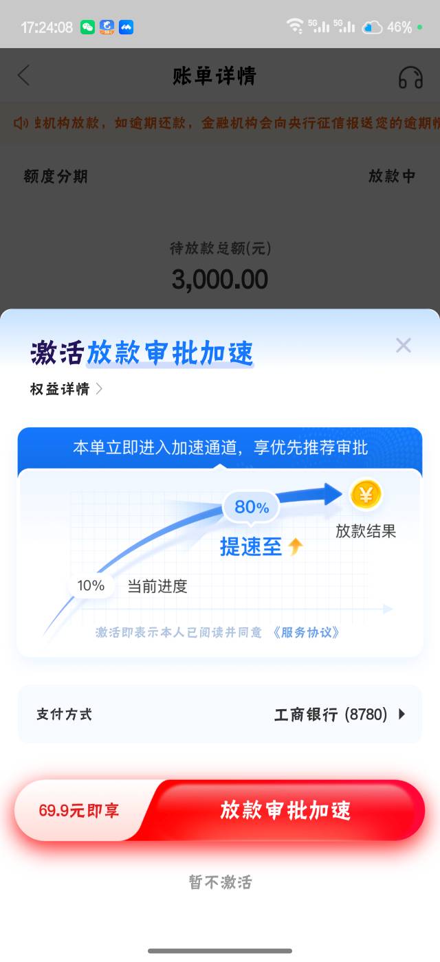 老哥们,刚刚万卡发短信说额度提至3000,然后上去申请了,不付这个69.9能下吗,付了没