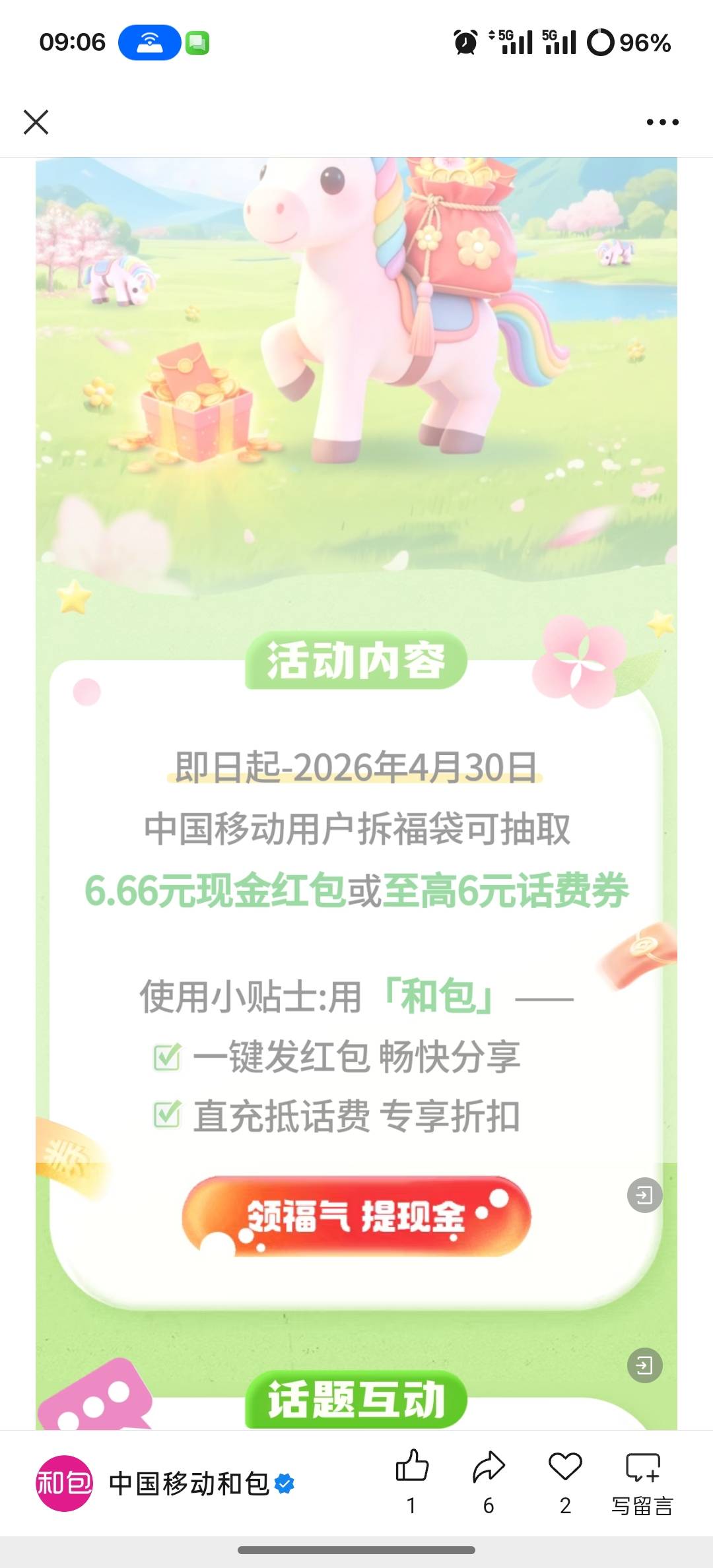 中国移动福伴春风来马上有钱花活动