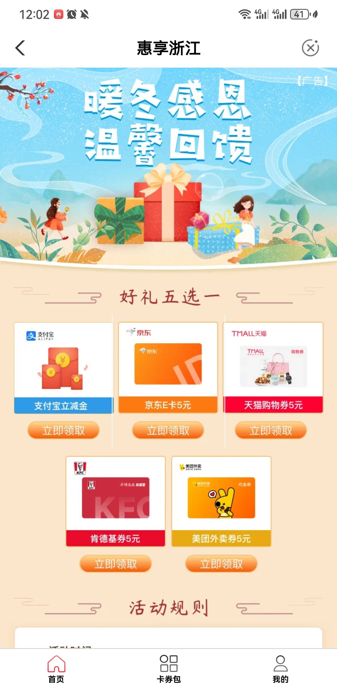 农行惠享浙江暖冬感恩温馨回馈活动