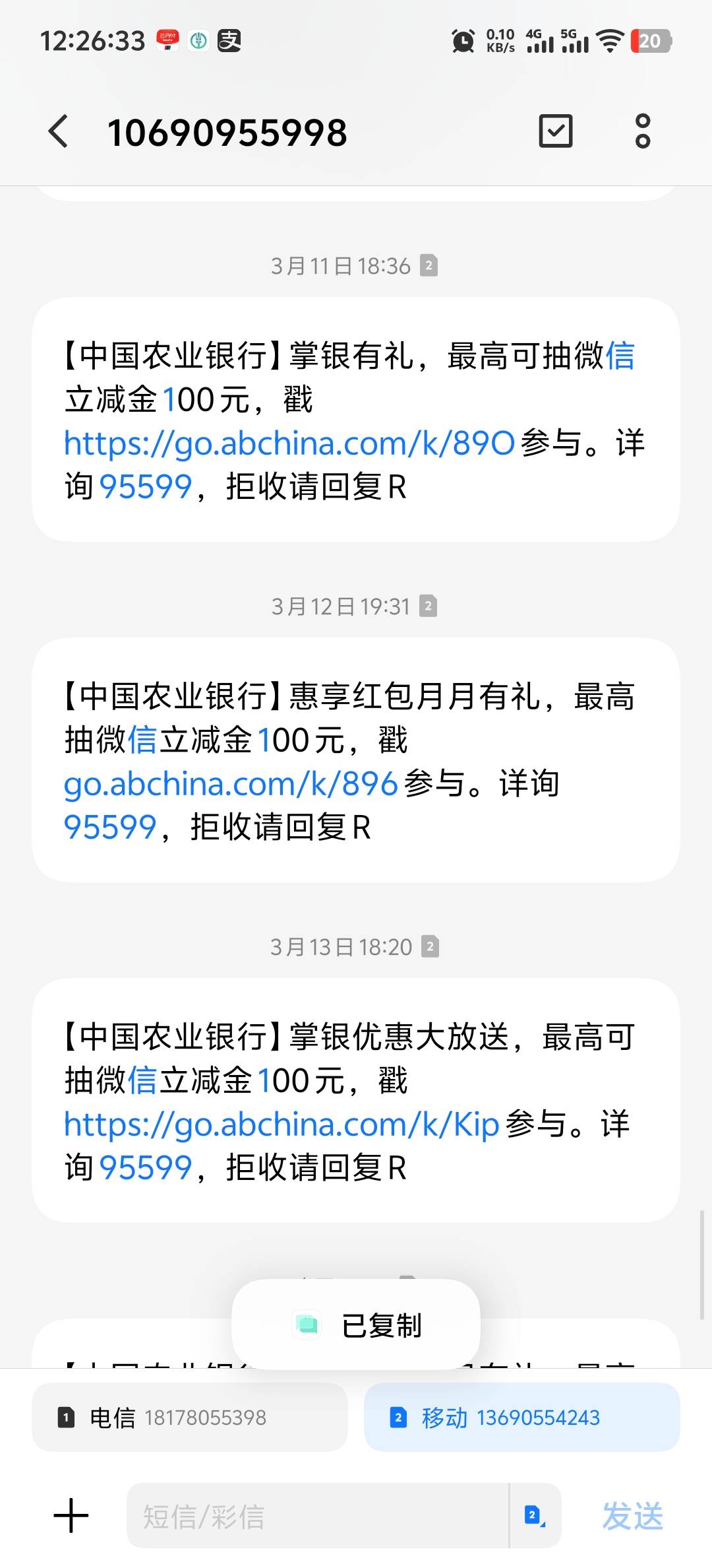 3.【中国农业银行】掌银有礼,最高可抽微信立减金100元,戳 https://go.abchina.com/k/89O 参与。详询95599,拒收请回复R