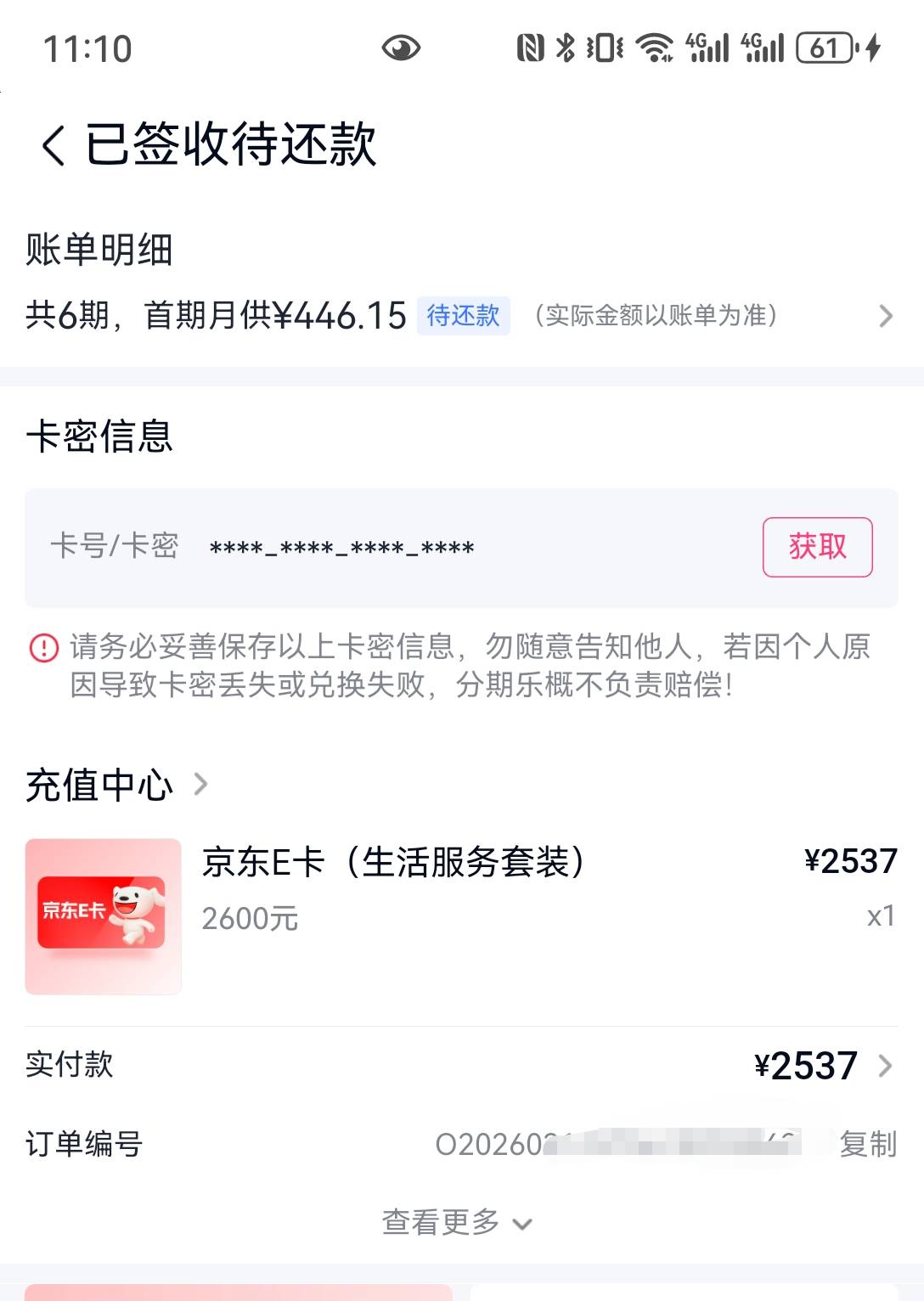 分期乐购物额度下单成功2500,错买了京东T装,直接京顺回收掉,有点小亏啊,2000回收只有1800多,对比下还是支付宝券划算。@卡农土豆 @卡农阳阳
