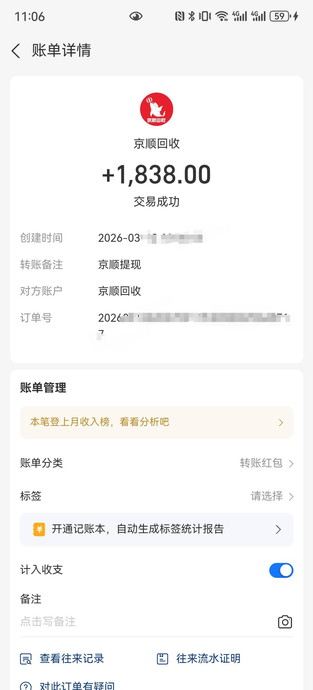 分期乐购物额度下单成功2500,错买了京东T装,直接京顺回收掉,有点小亏啊,2000回收