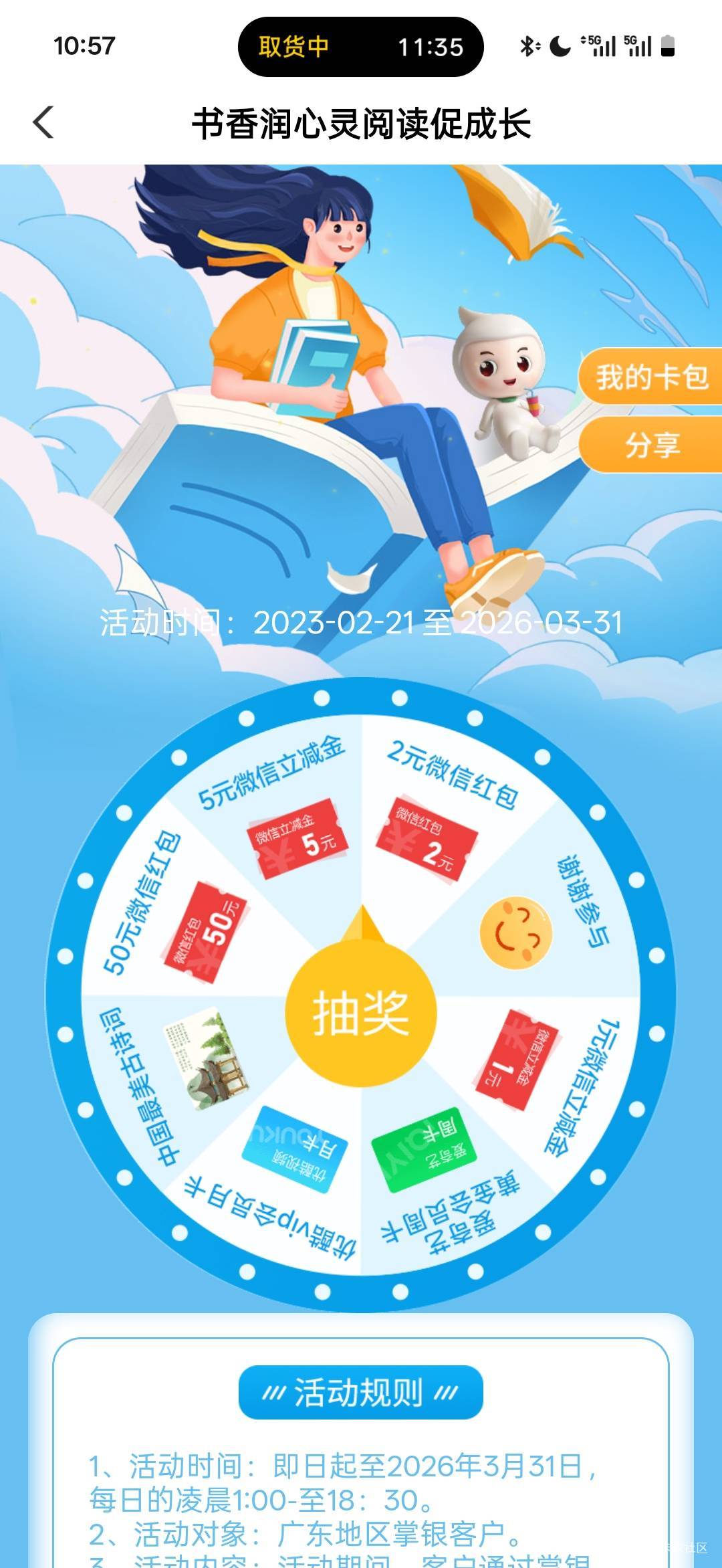 农行广东书香润心灵阅读促成长抽奖活动