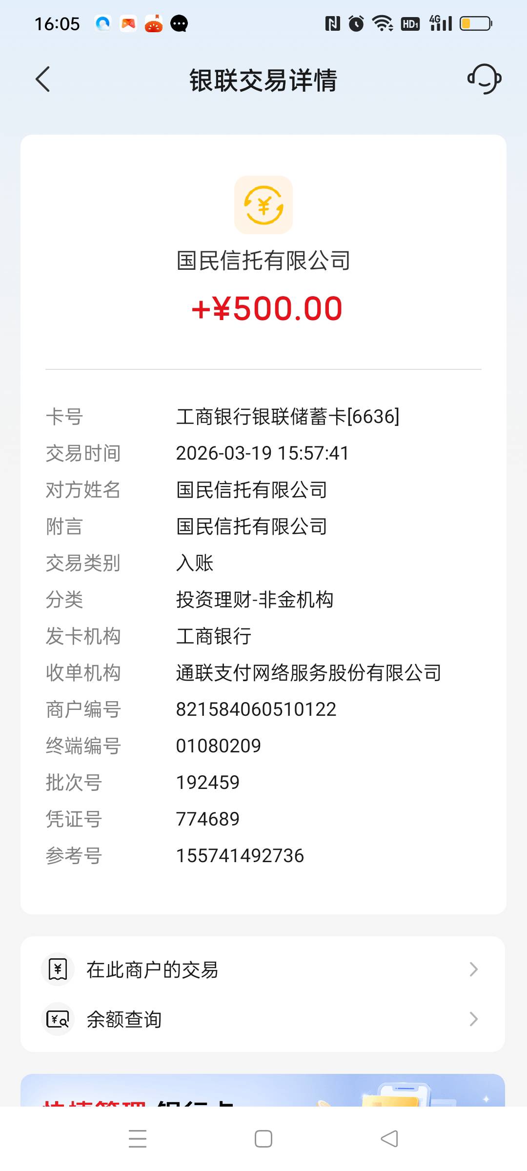 你的到账了?