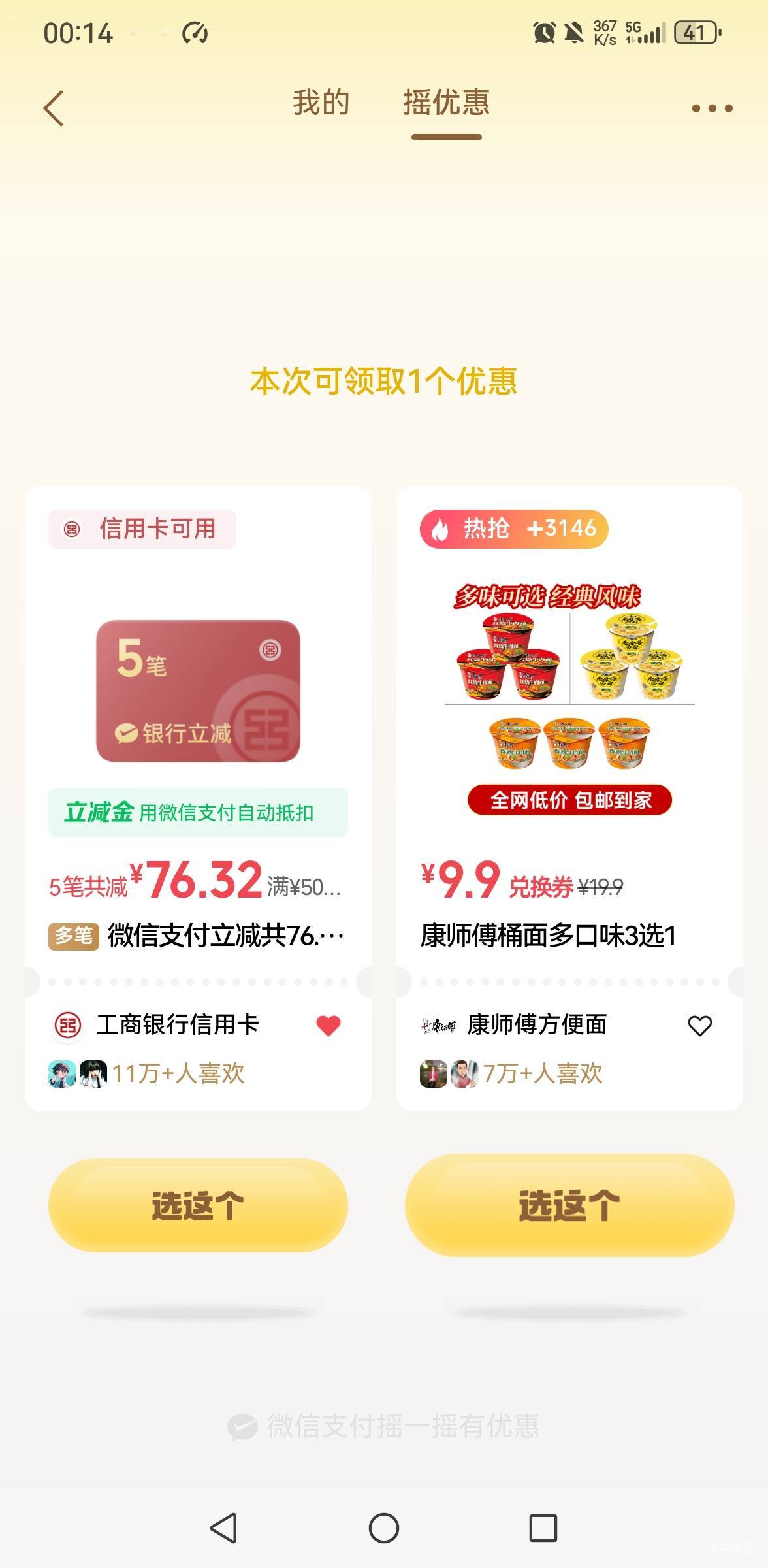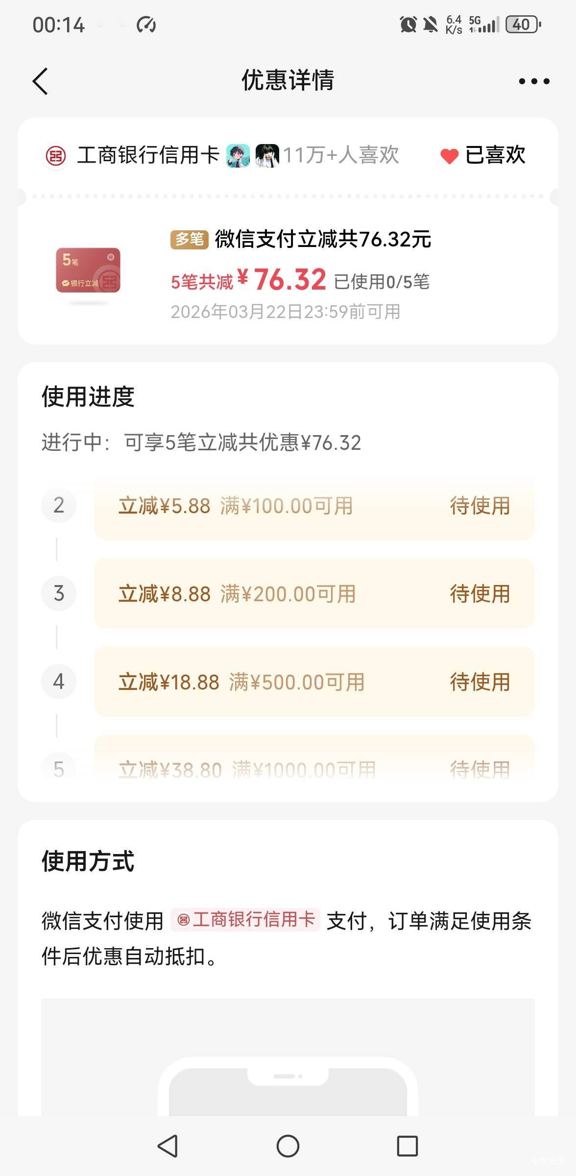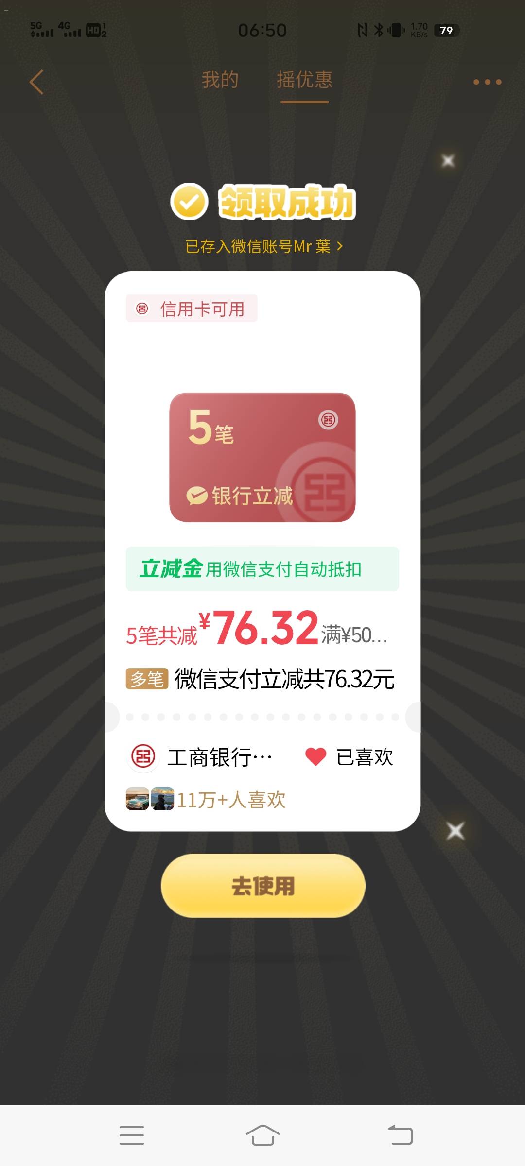 微信摇一摇工行贵州信用卡微信支付多笔立减活动
