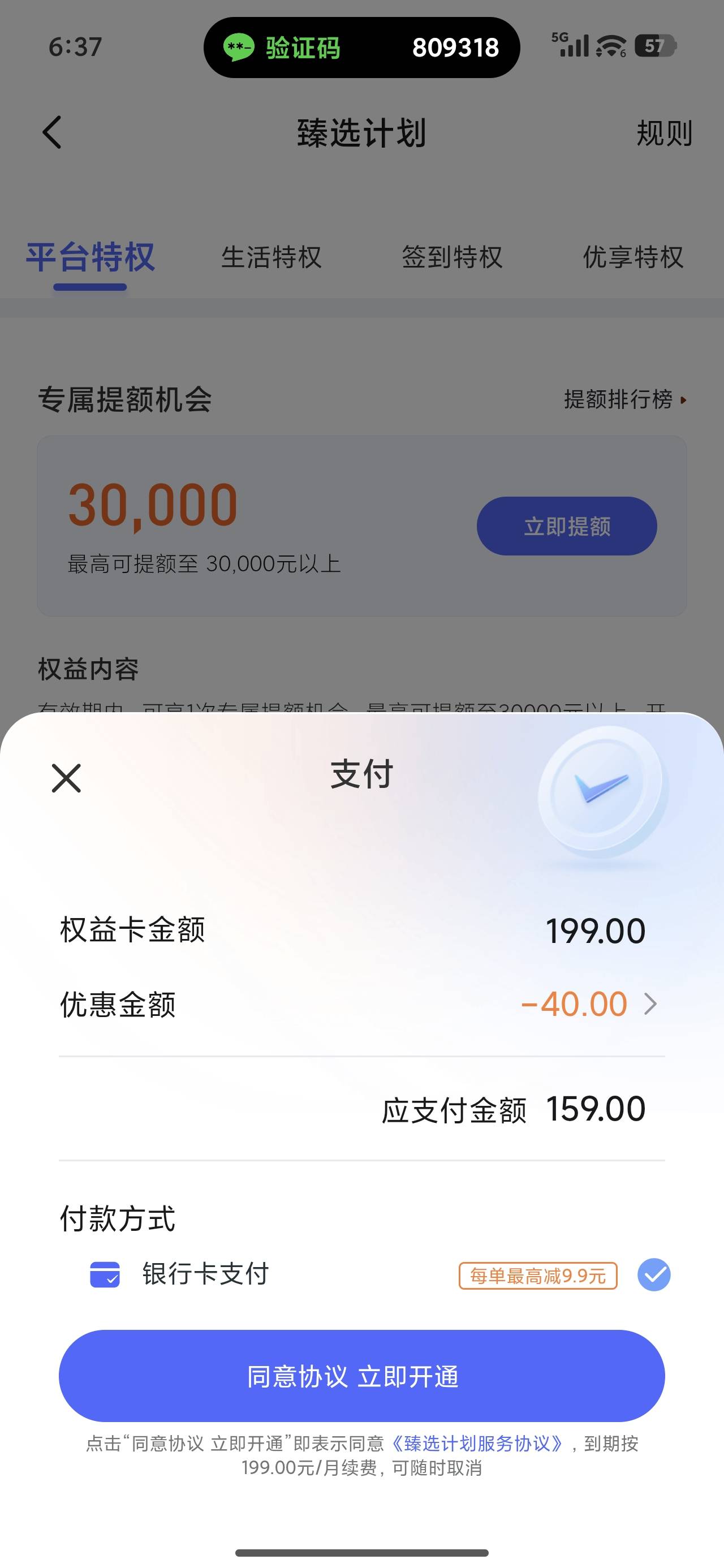 宜享花这个能开吗,我这个得先付钱,付了以后会出额度嘛