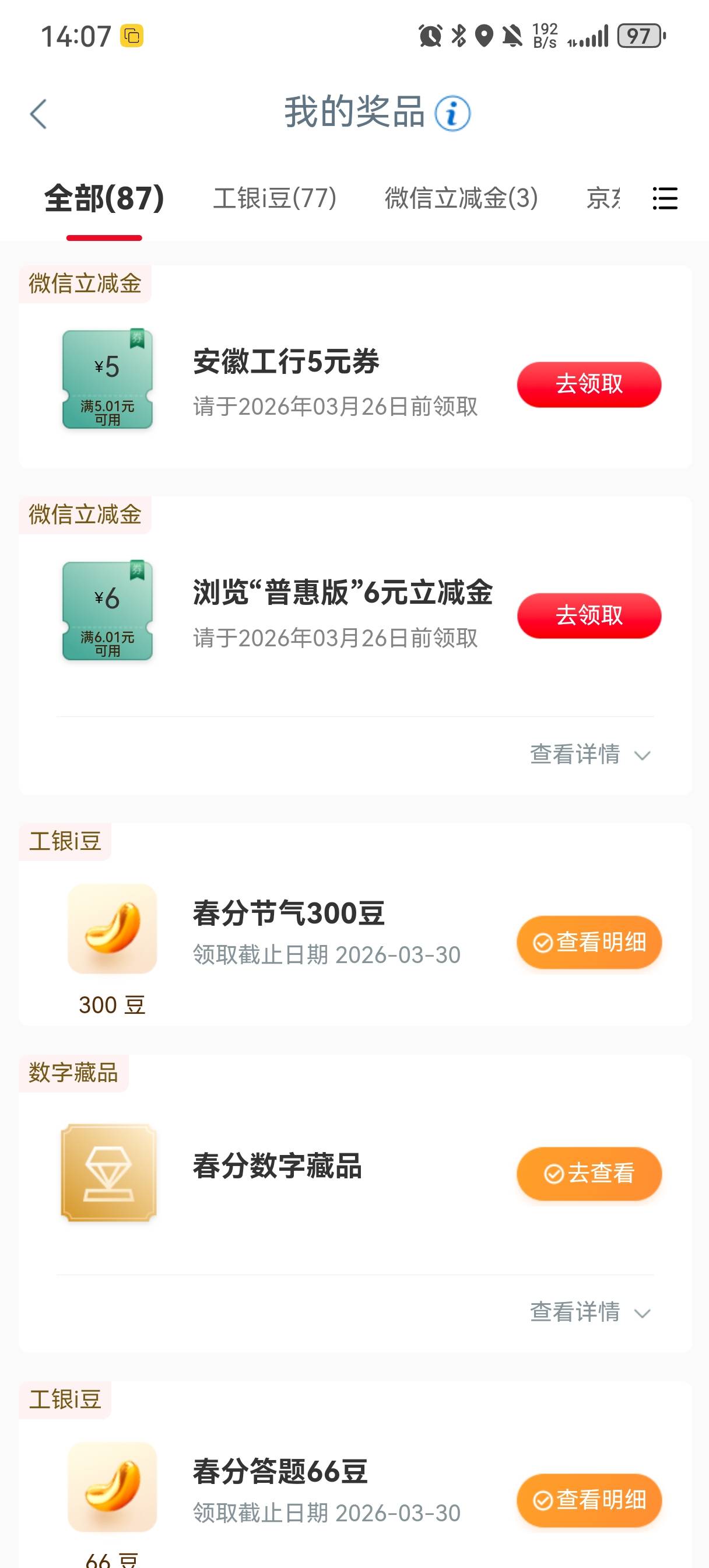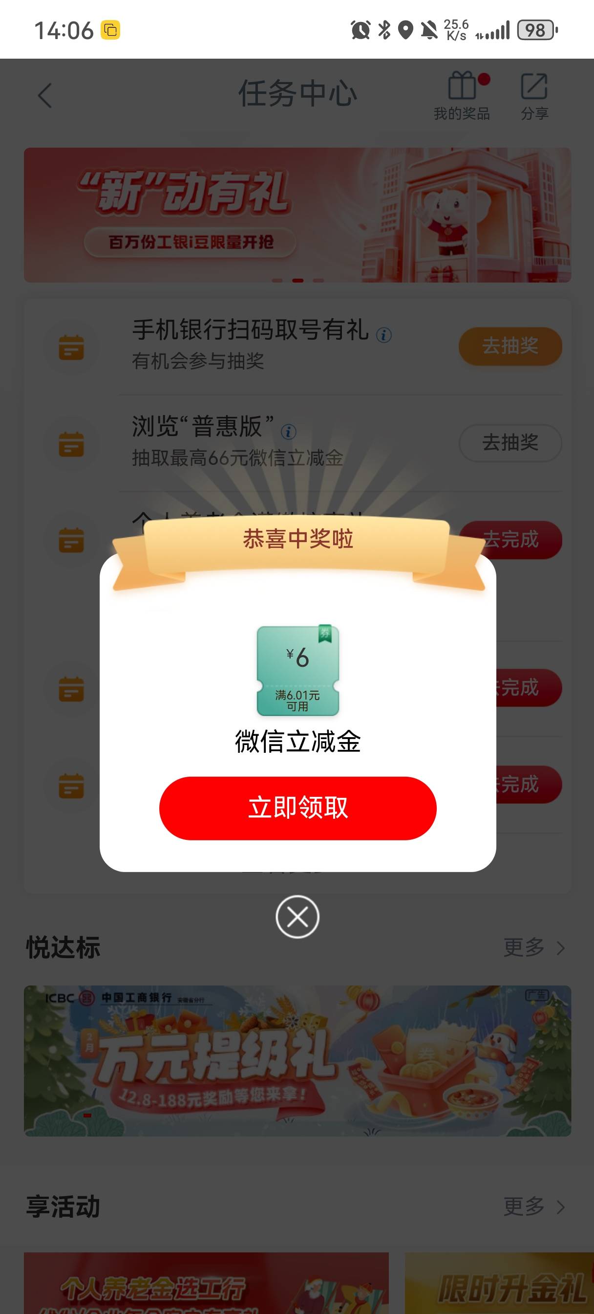 工行任务中心手机银行扫码取号有礼活动