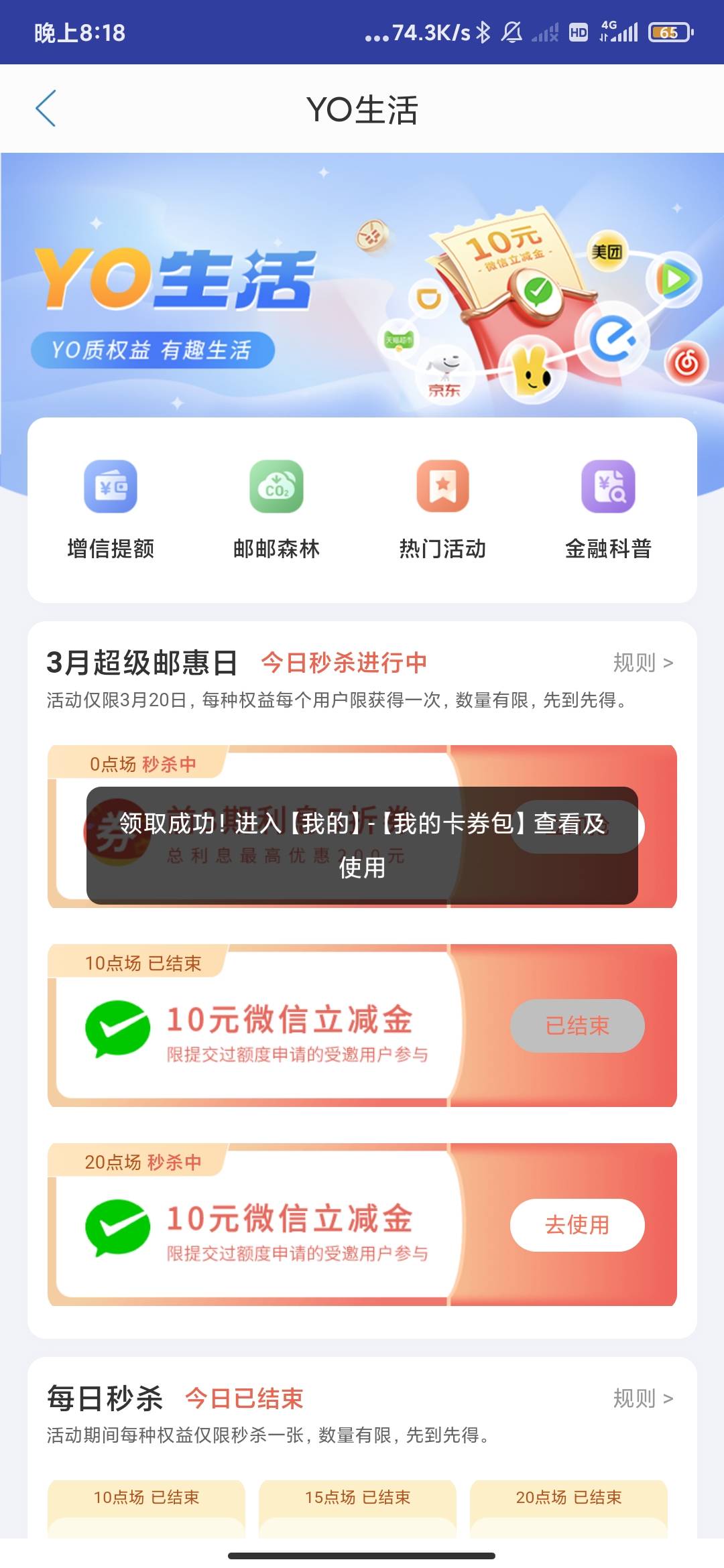 中邮钱包超级邮惠日今日秒杀活动
