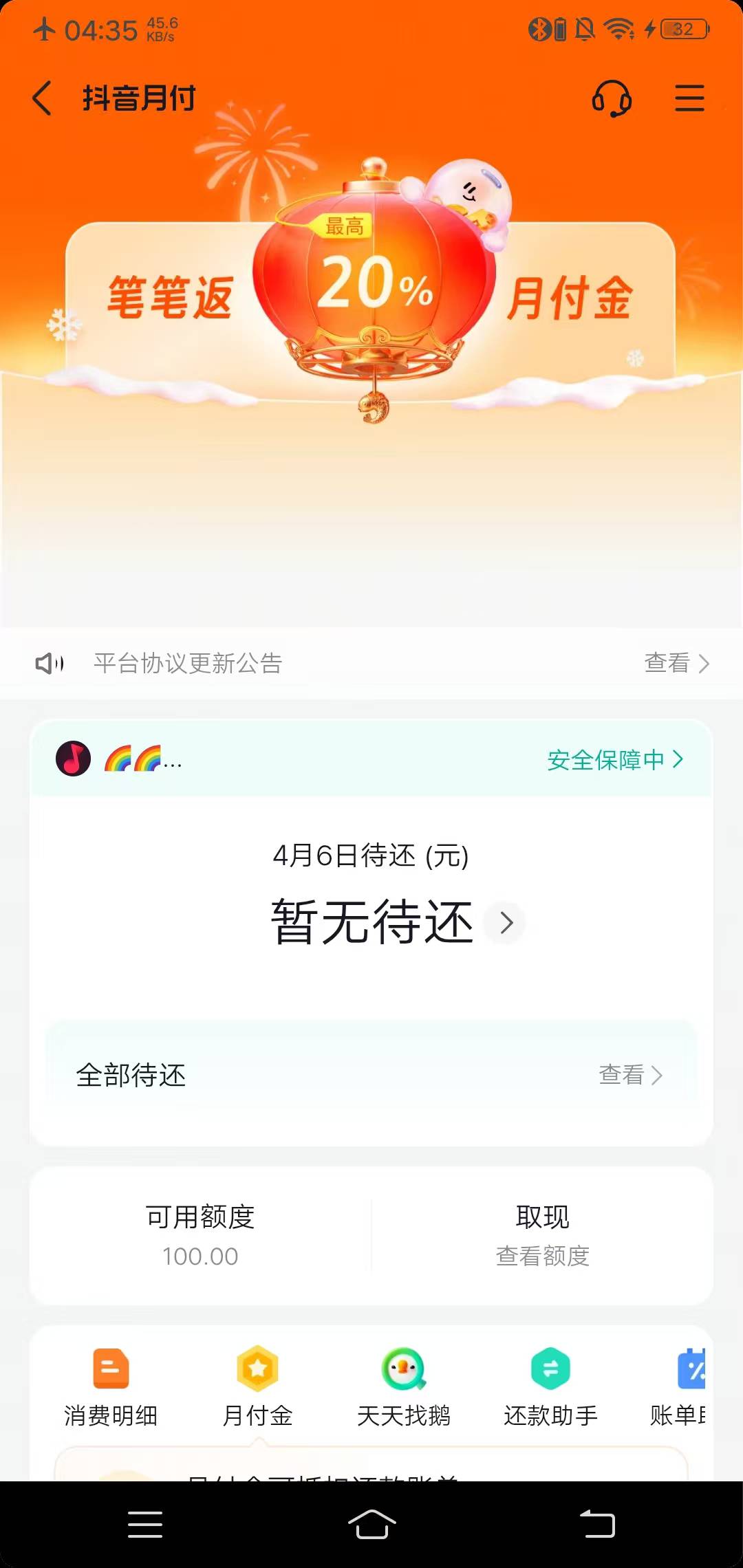 前天皮皮虾放心借出了一千,今天月付竟然出了一百。以前都是逐步开放