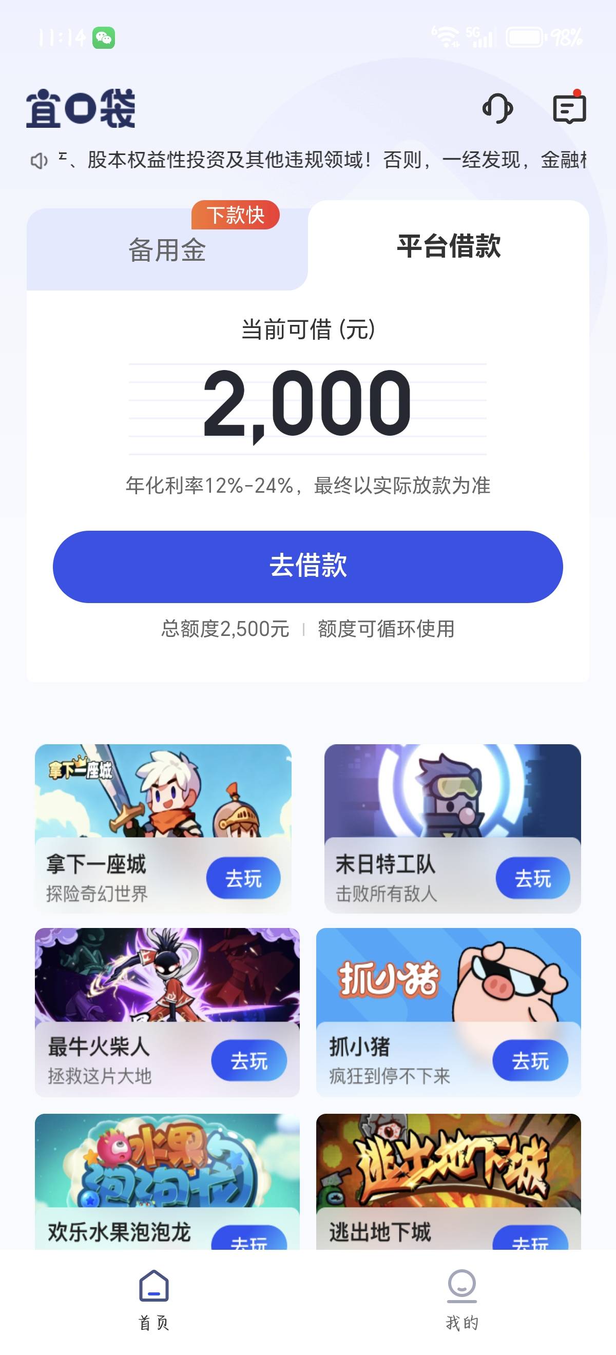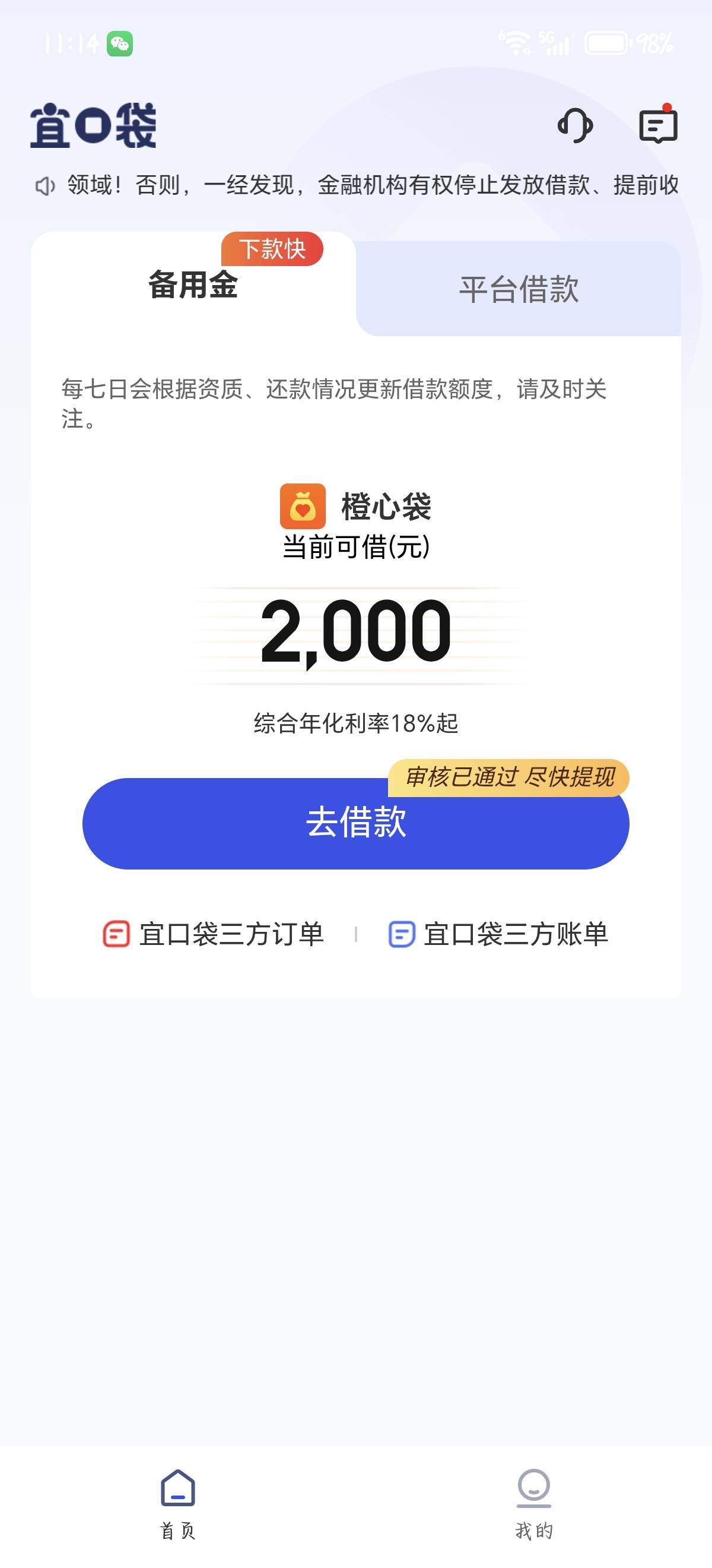 宜口袋本体跟三方都给了两千额度。怎么借不出来。