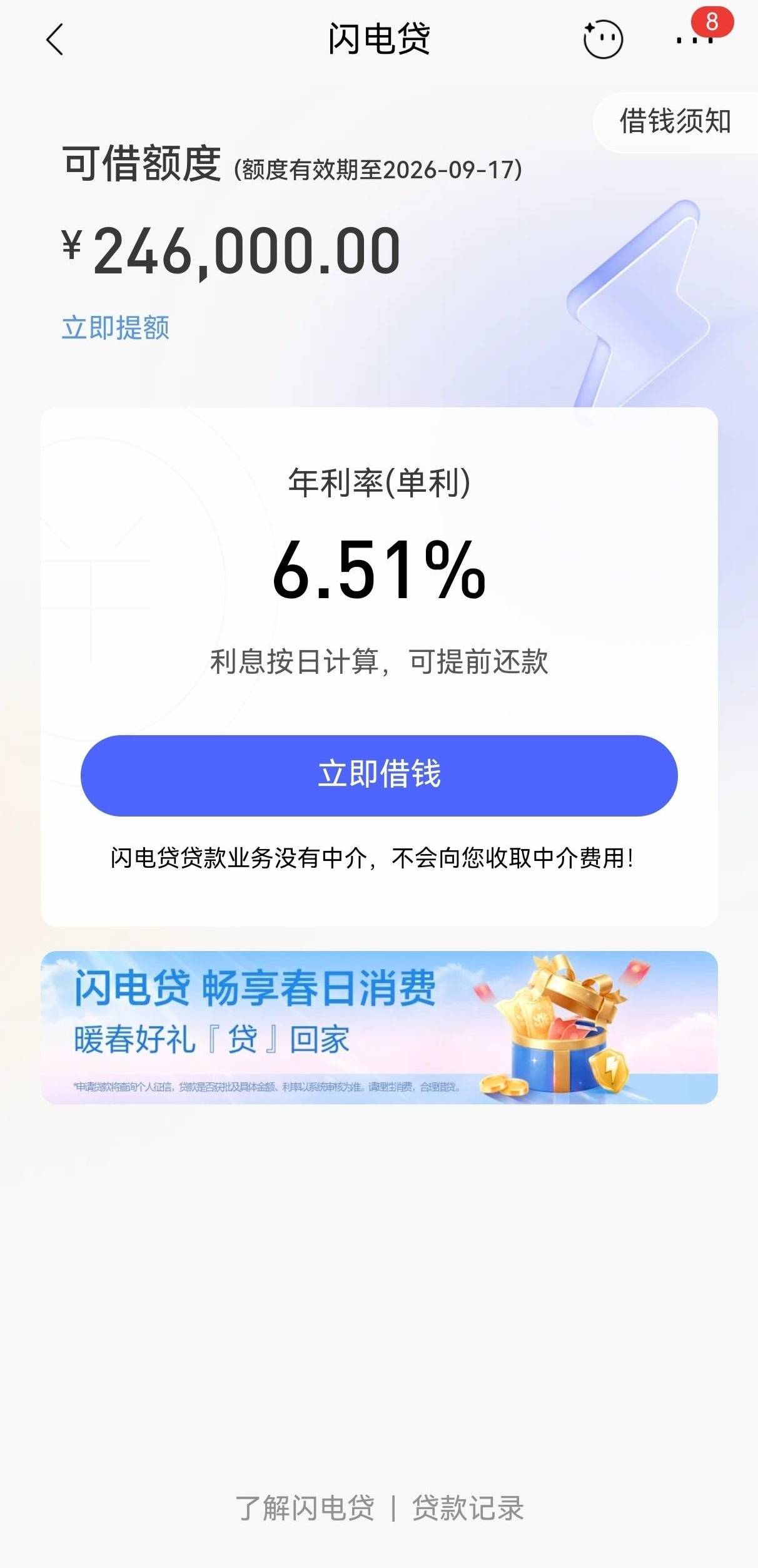 招商银行闪电贷申请成功,利率太高!今天中午卡了贷后,申请闪电贷如批了24w,这利率太