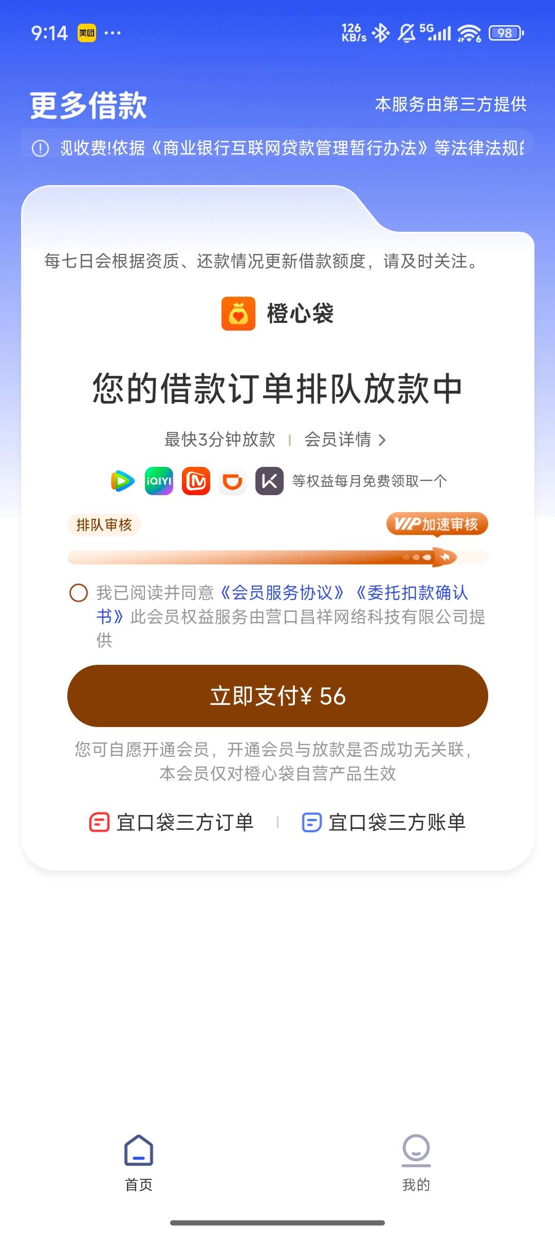 我上一笔先用后付没付,他没扣,现在就是协调的要加速