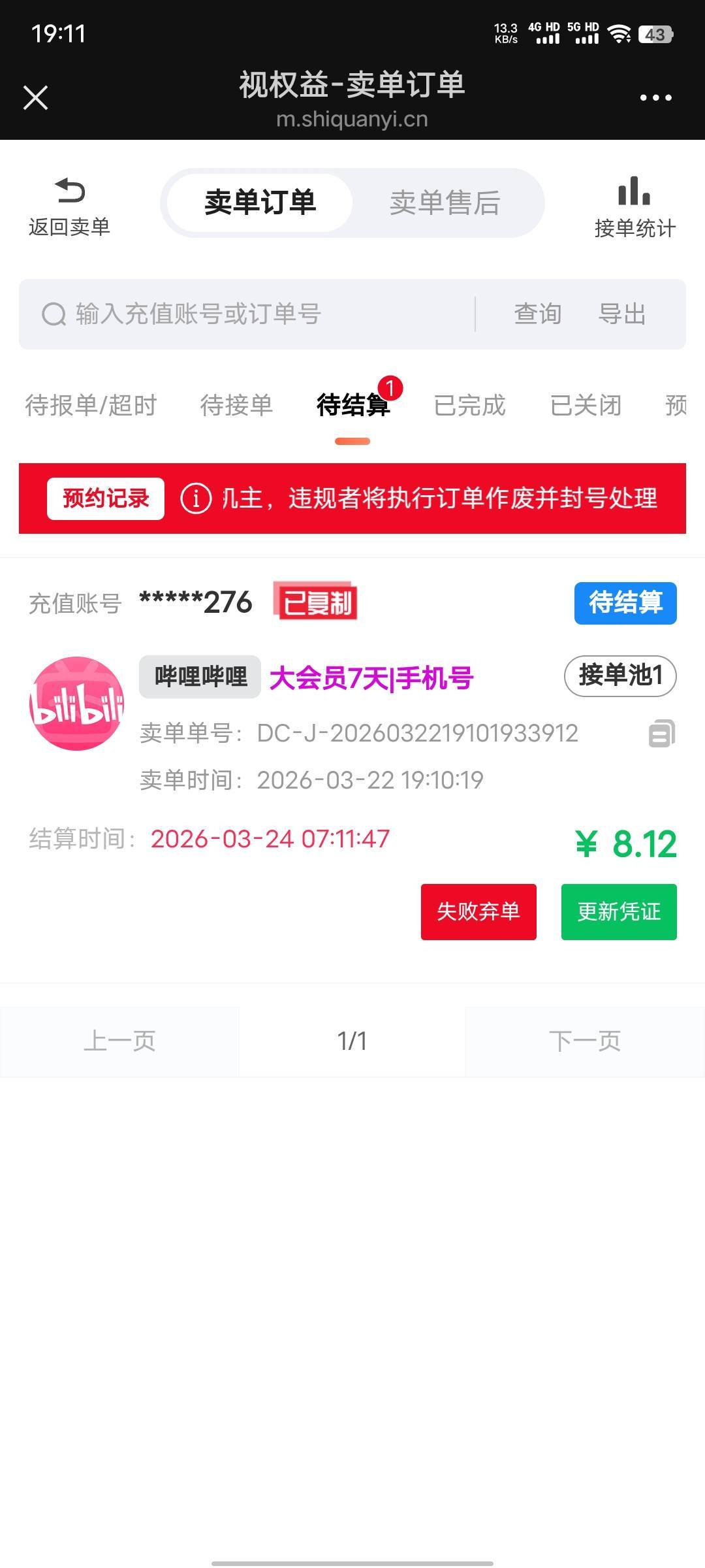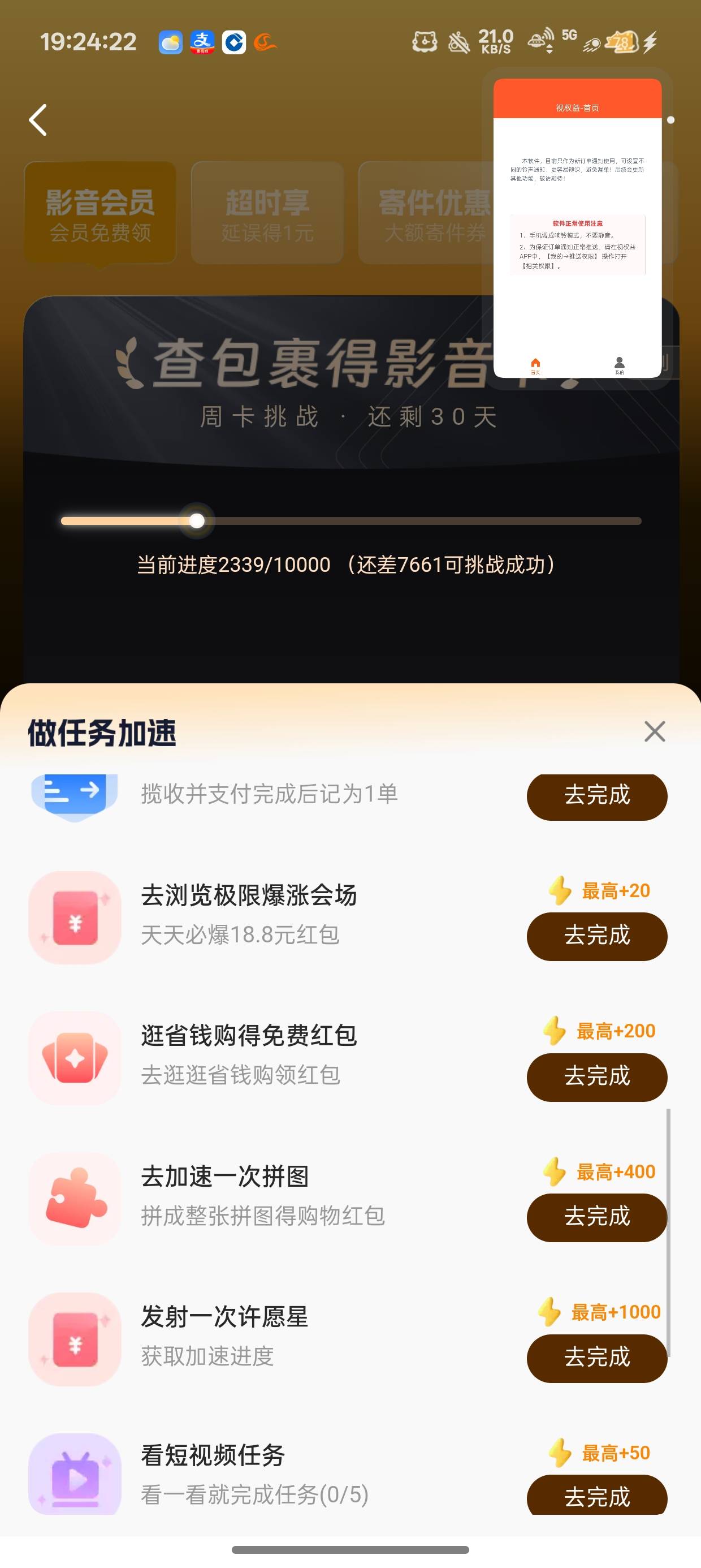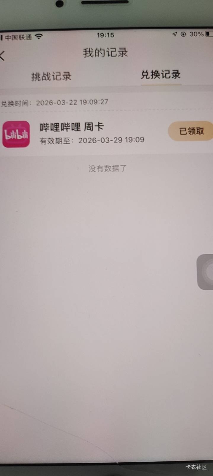 菜鸟裹裹首页有个达人会员,点击去看看,查包裹得影音卡,随便就完成了,兑换哔哩哔哩周卡,可以卖8毛多