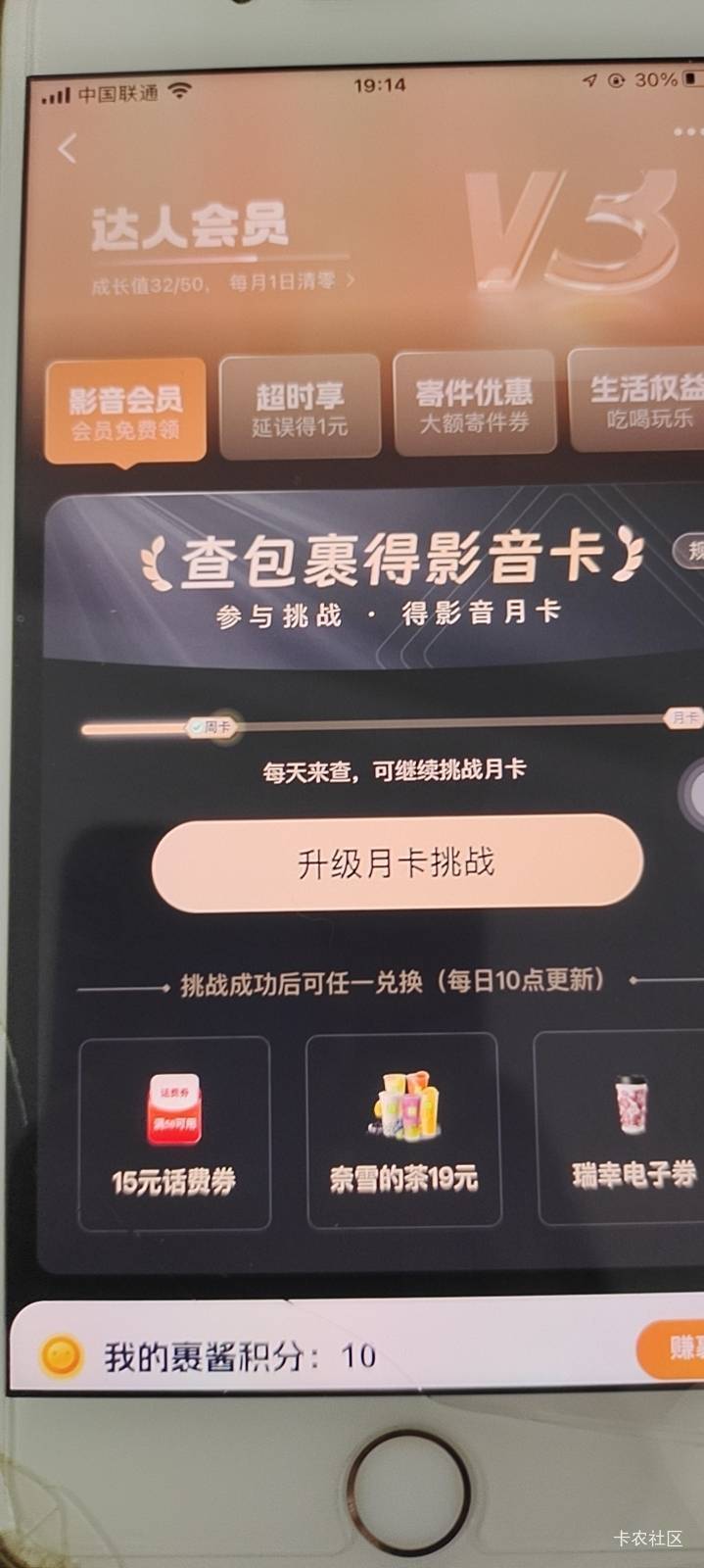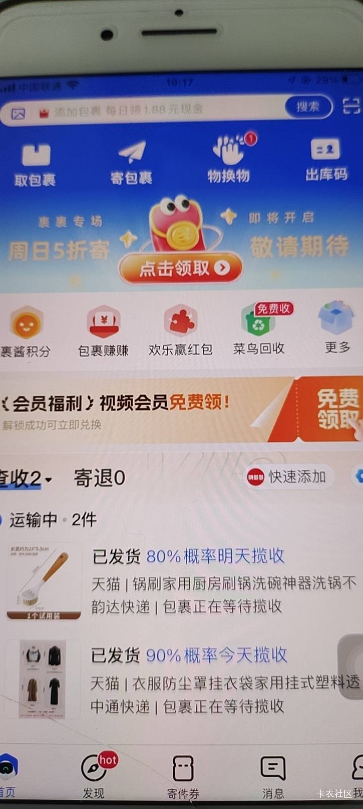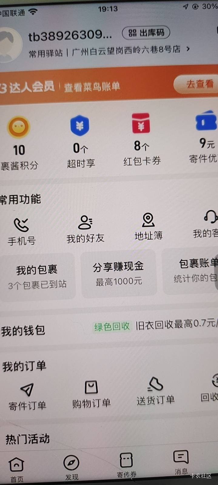 菜鸟达人会员查包裹得影音卡活动