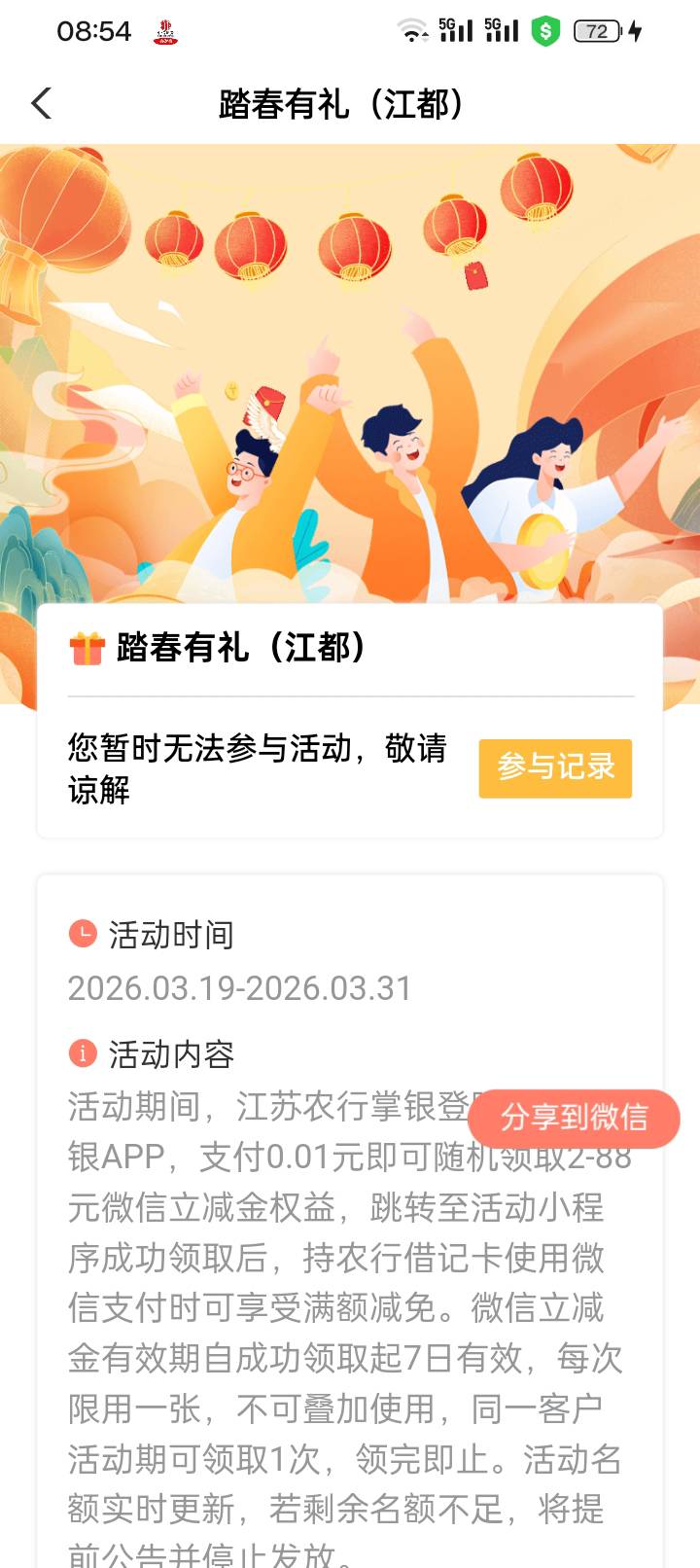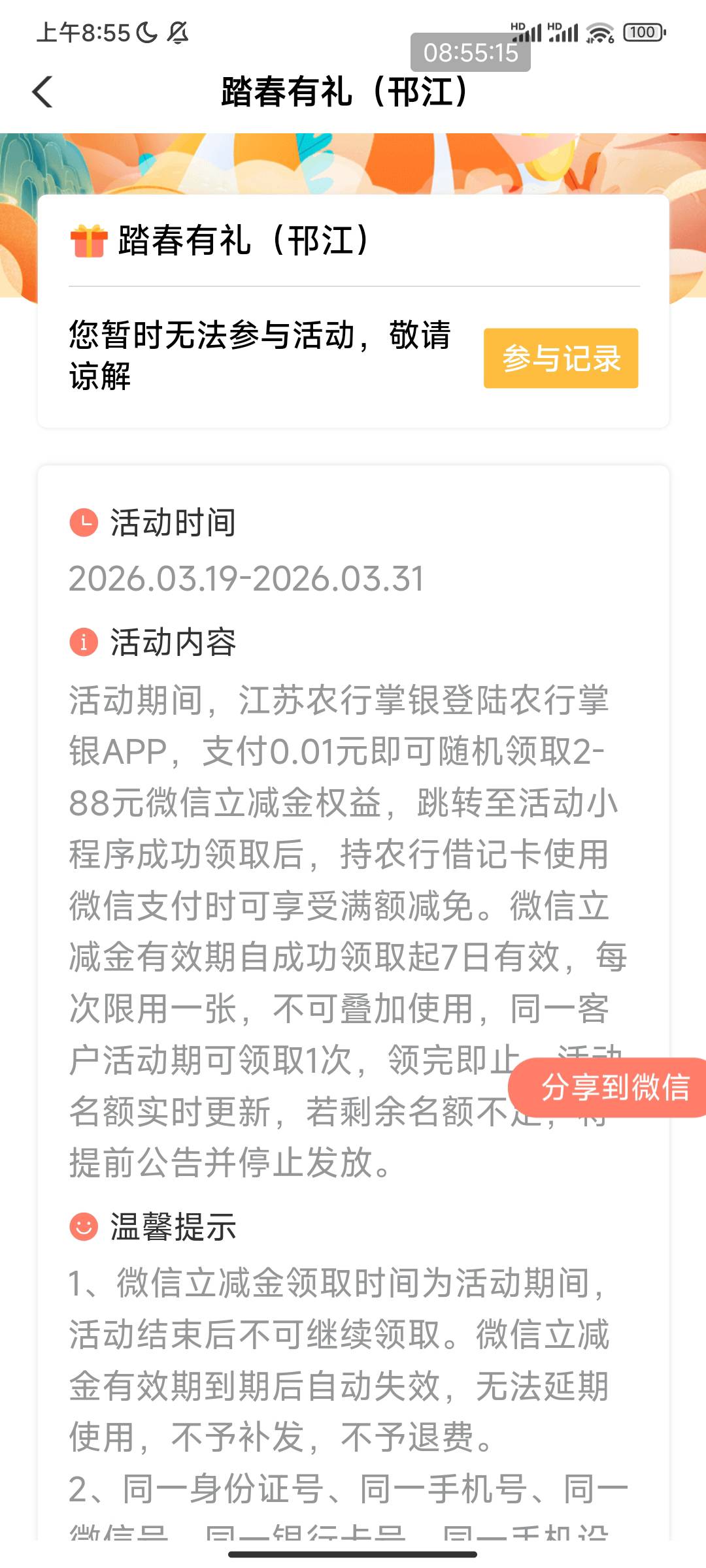 新活动:农行扬州城市专区踏春有礼抽奖活动