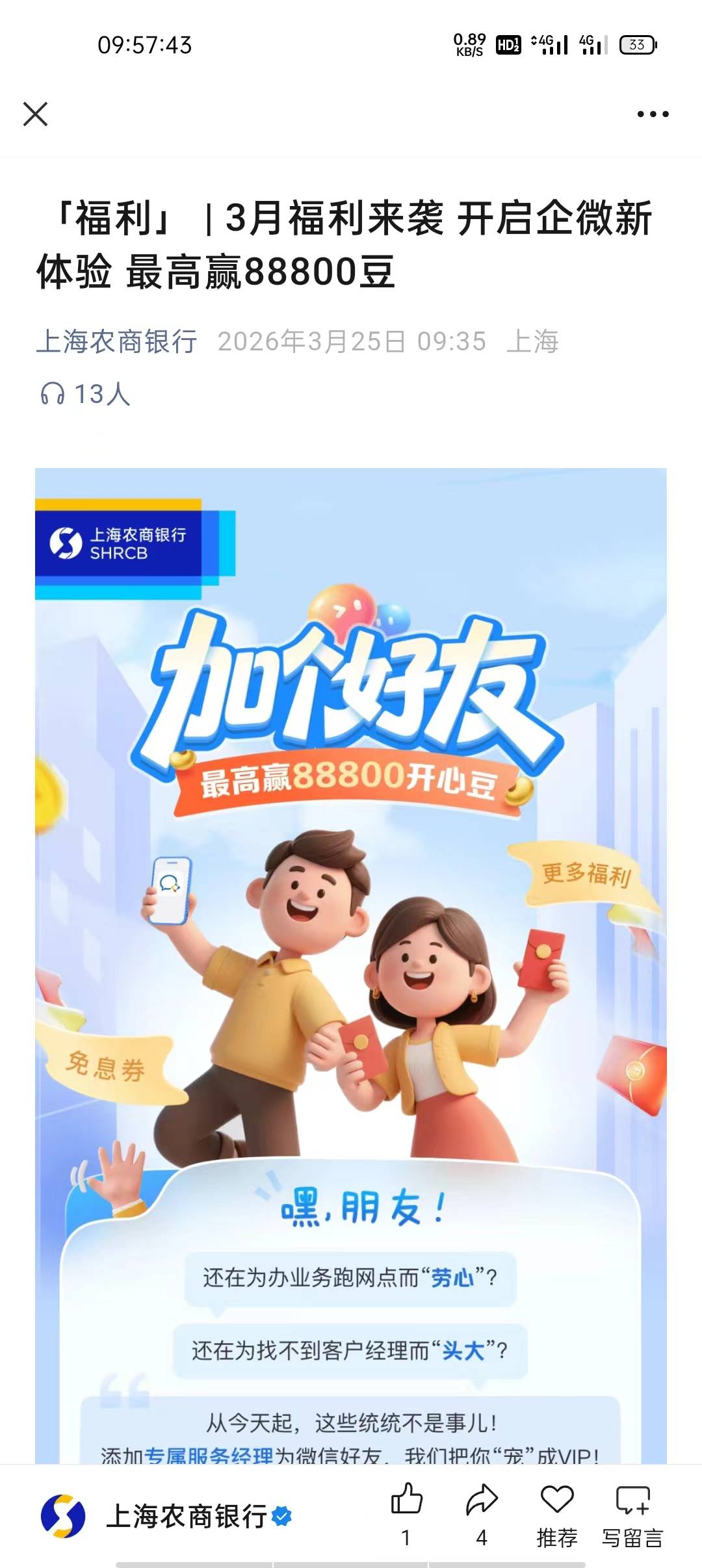 上海农商银行加微信好友赢万豆活动