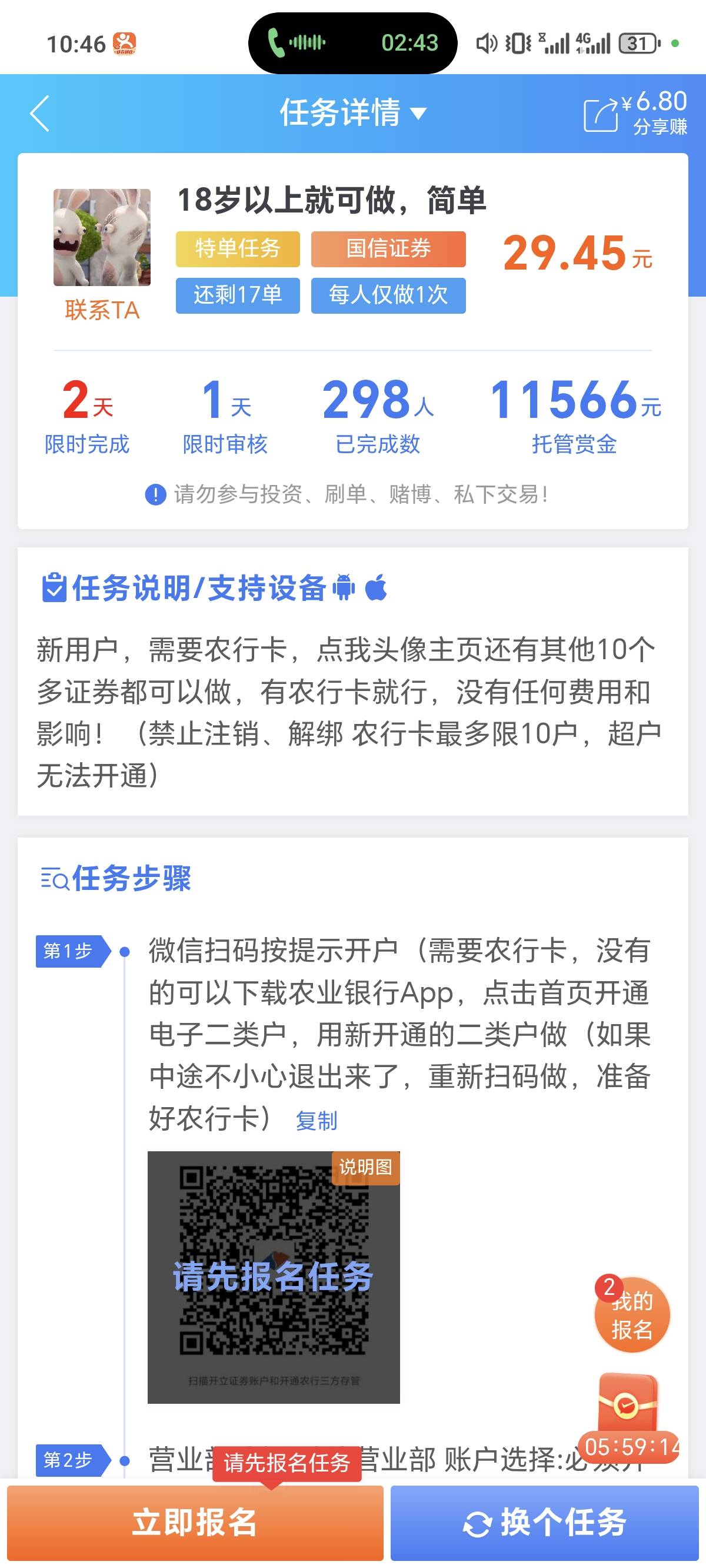 老哥们,这个兔子老哥的营业部是哪个,国信扫码不让开,但是可以app开