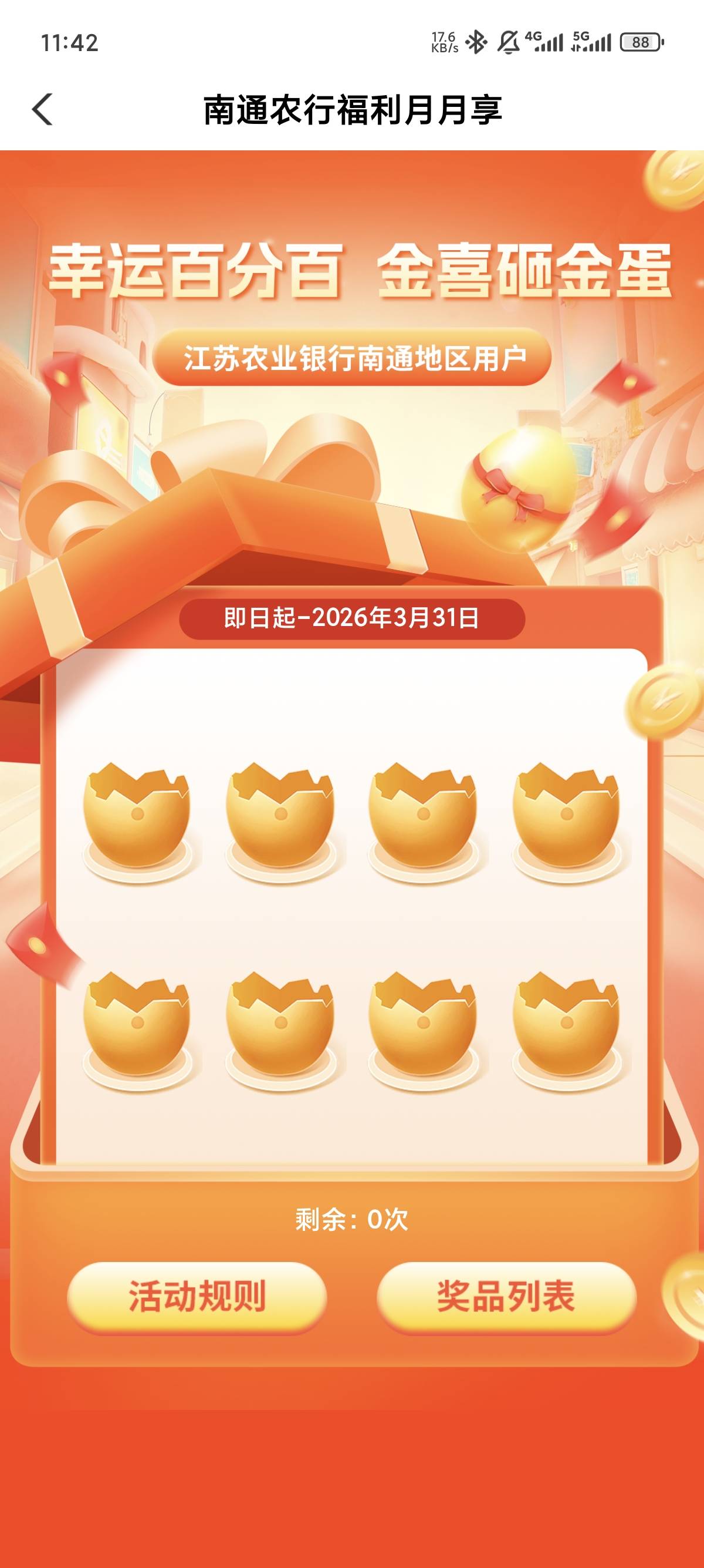 农行南通福利月月享金喜砸金蛋活动
