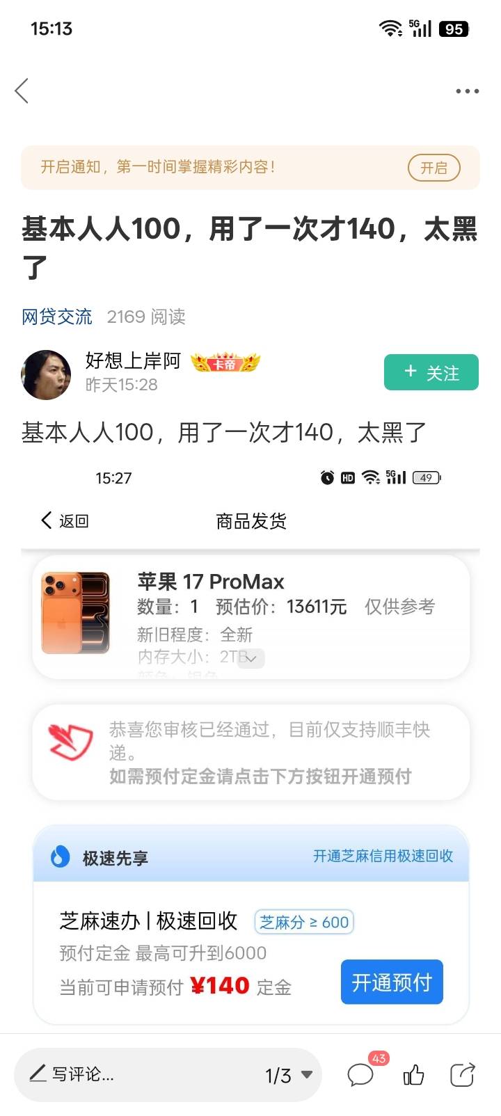 看了那兄弟贴里二围码扫的,信用回收,跟转转一样的,拿预付款
