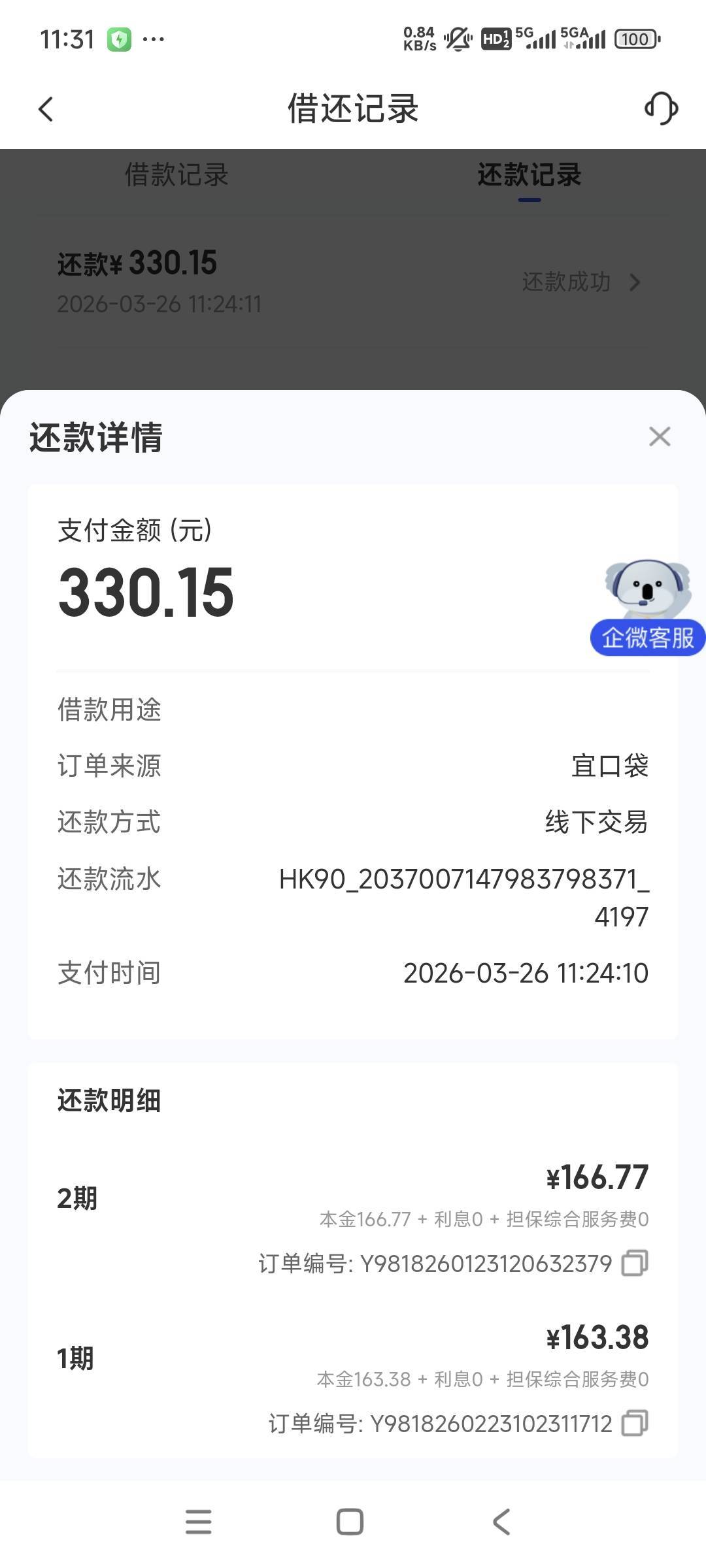 结果今天一觉醒来,发现给我还了这一期,一看是线下交易。