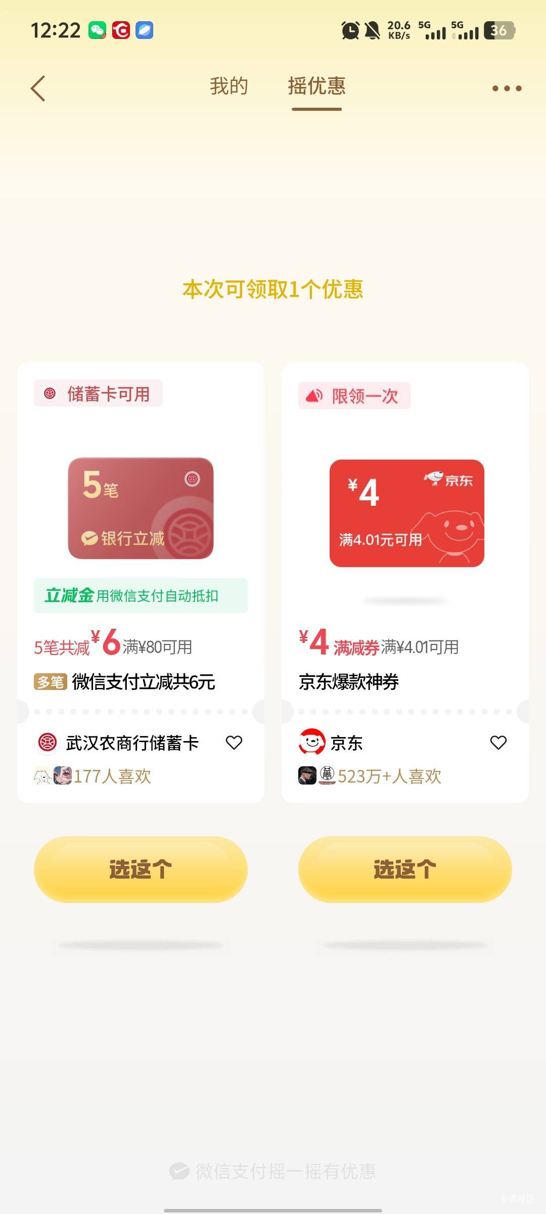 微信摇一摇武汉农商银行微信支付多笔立减活动