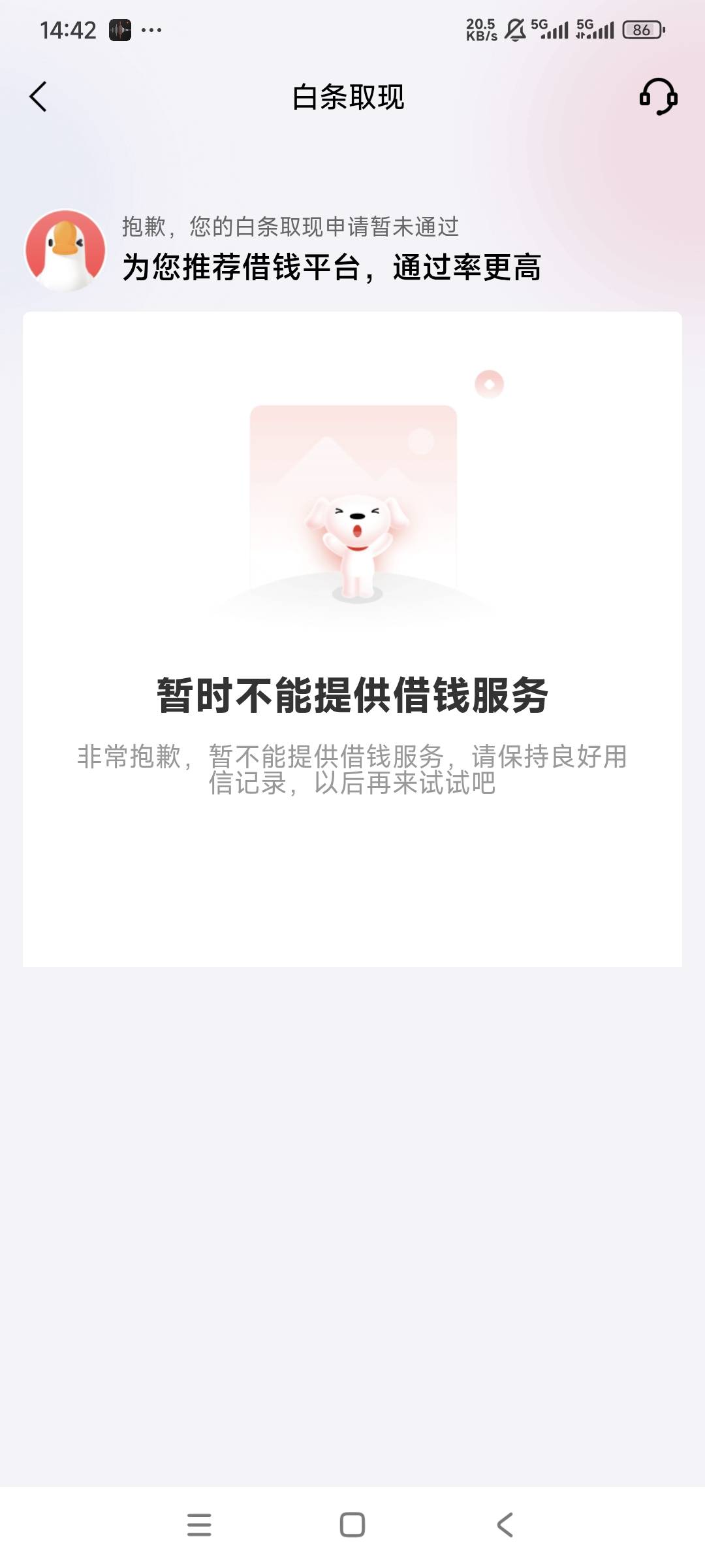 京东是不是没吃药啊 天天给我推又不让取现白条