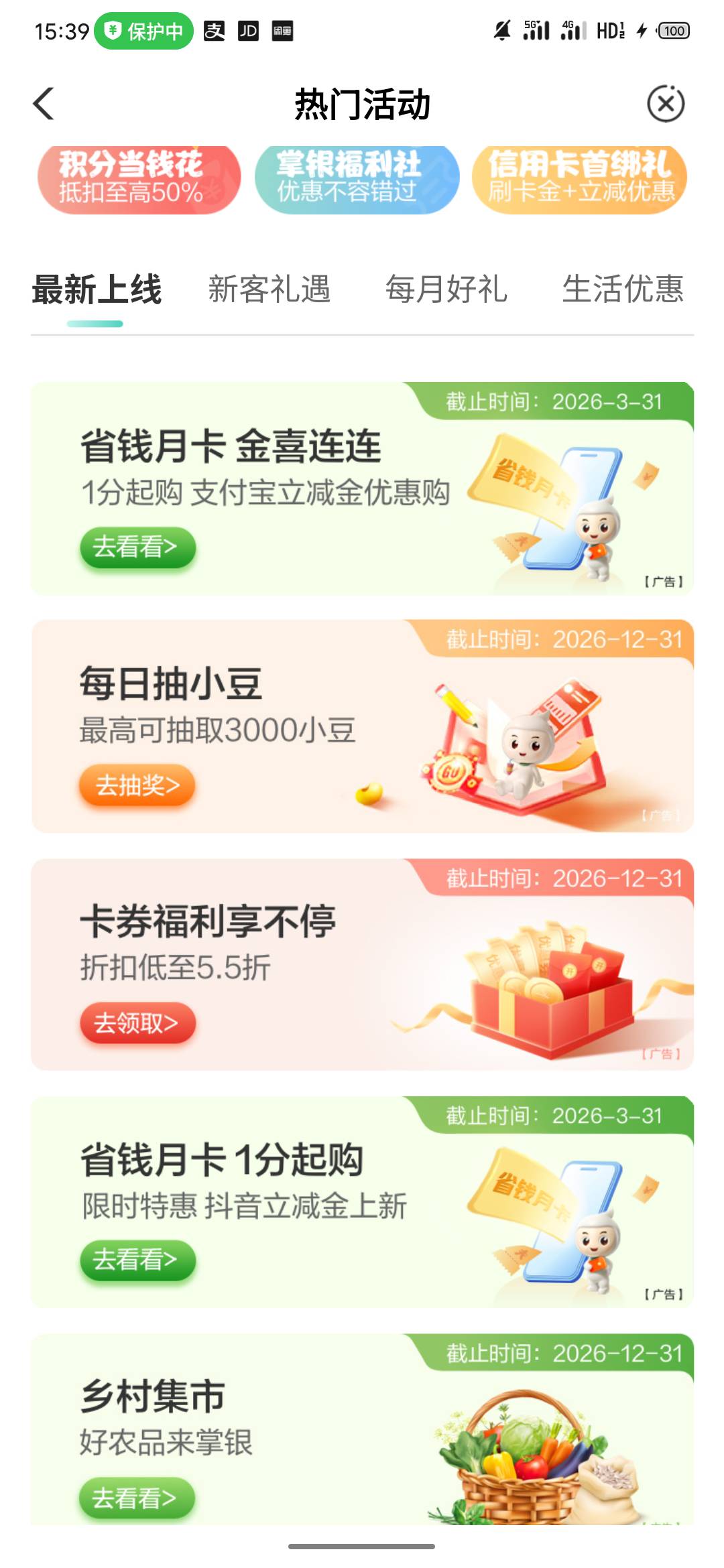 农行省钱月卡支付宝立减金限时优惠购活动