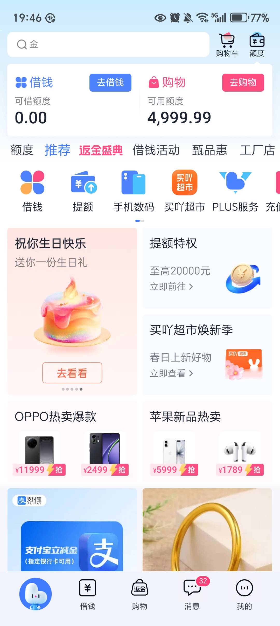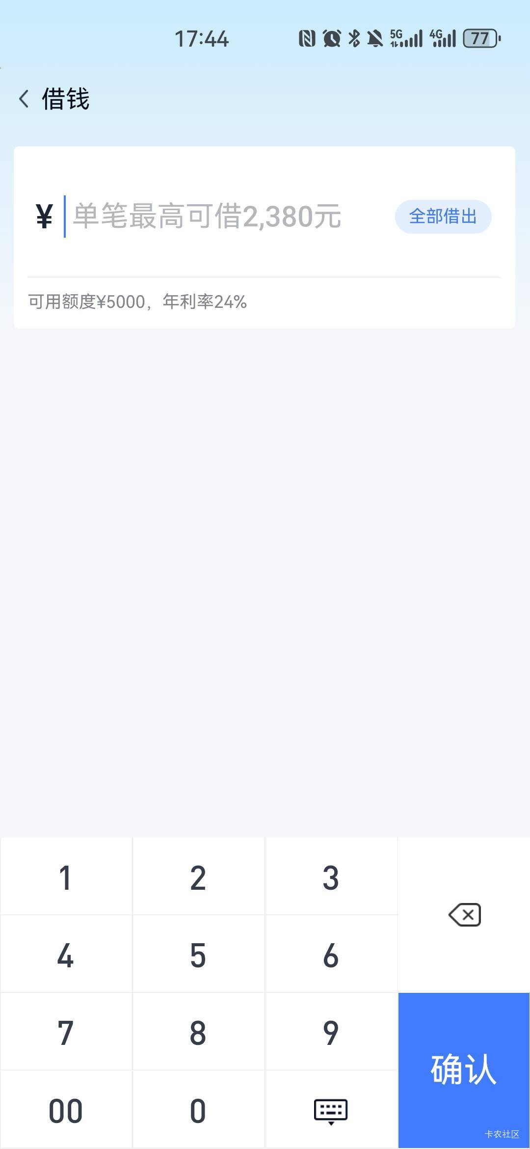 南柯ん 发表于 2026-03-26 17:41 五千购物额度,200可借额度,最多只能借80,平台100起借,等于不能借