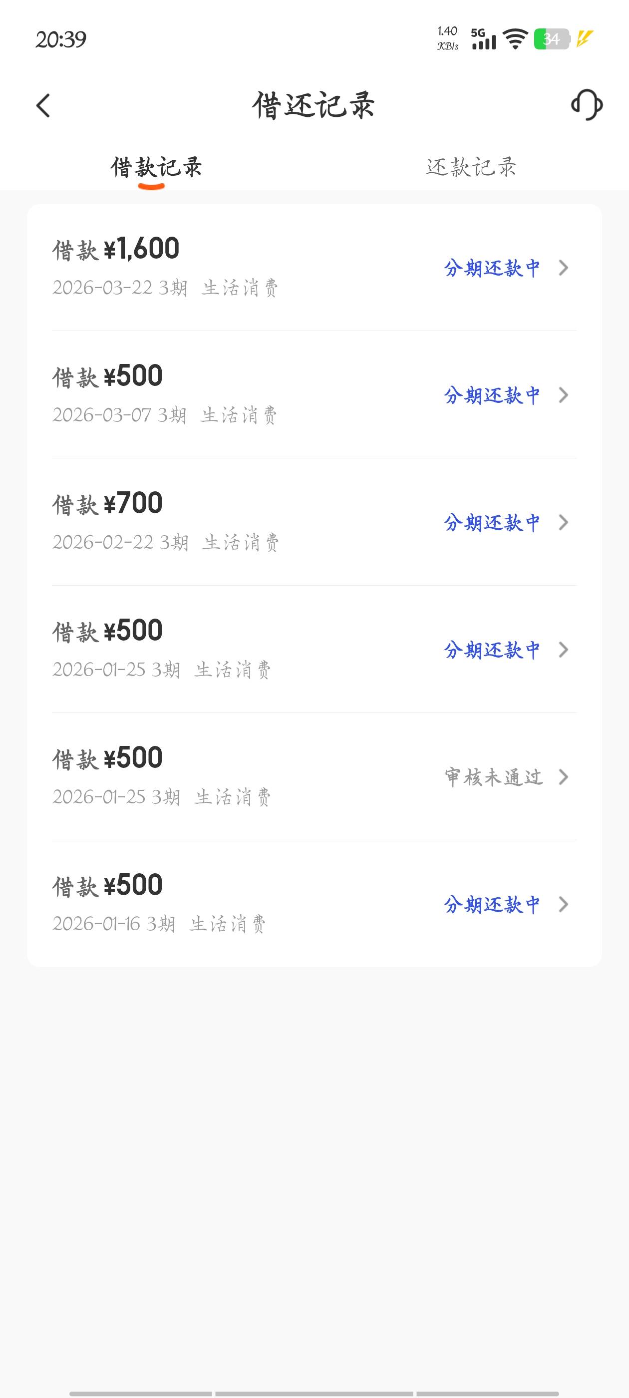 最开始的两笔被我拦截了,后面几笔全是只能先付款没有先用后付。