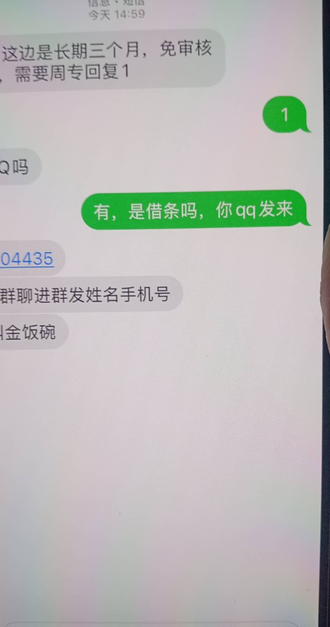 老哥们注意这个短信,今天莫名其妙下了1700,人人信是以前的今借到我不懂,逾期3000多天还给放了,进了群叫我下载满天星还没认证完就给额度打条子