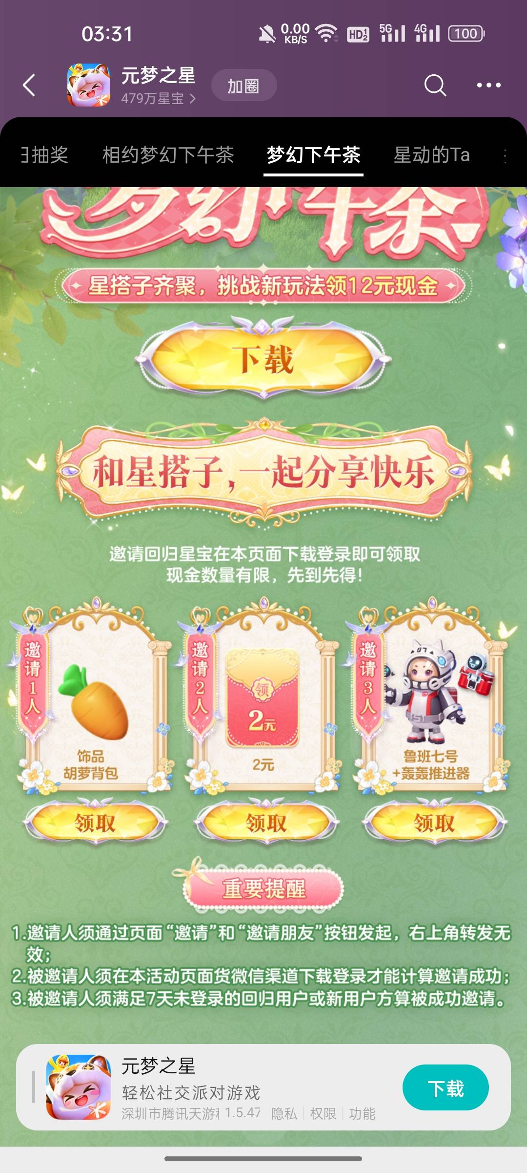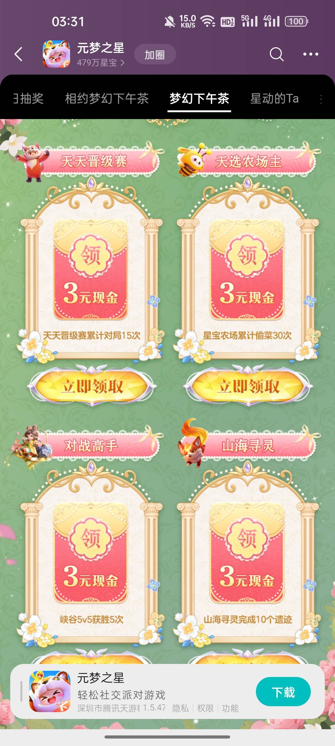 元梦邀请回归和打游戏一共15元,刚开始的,还有包,游戏圈里面找到梦幻下午茶