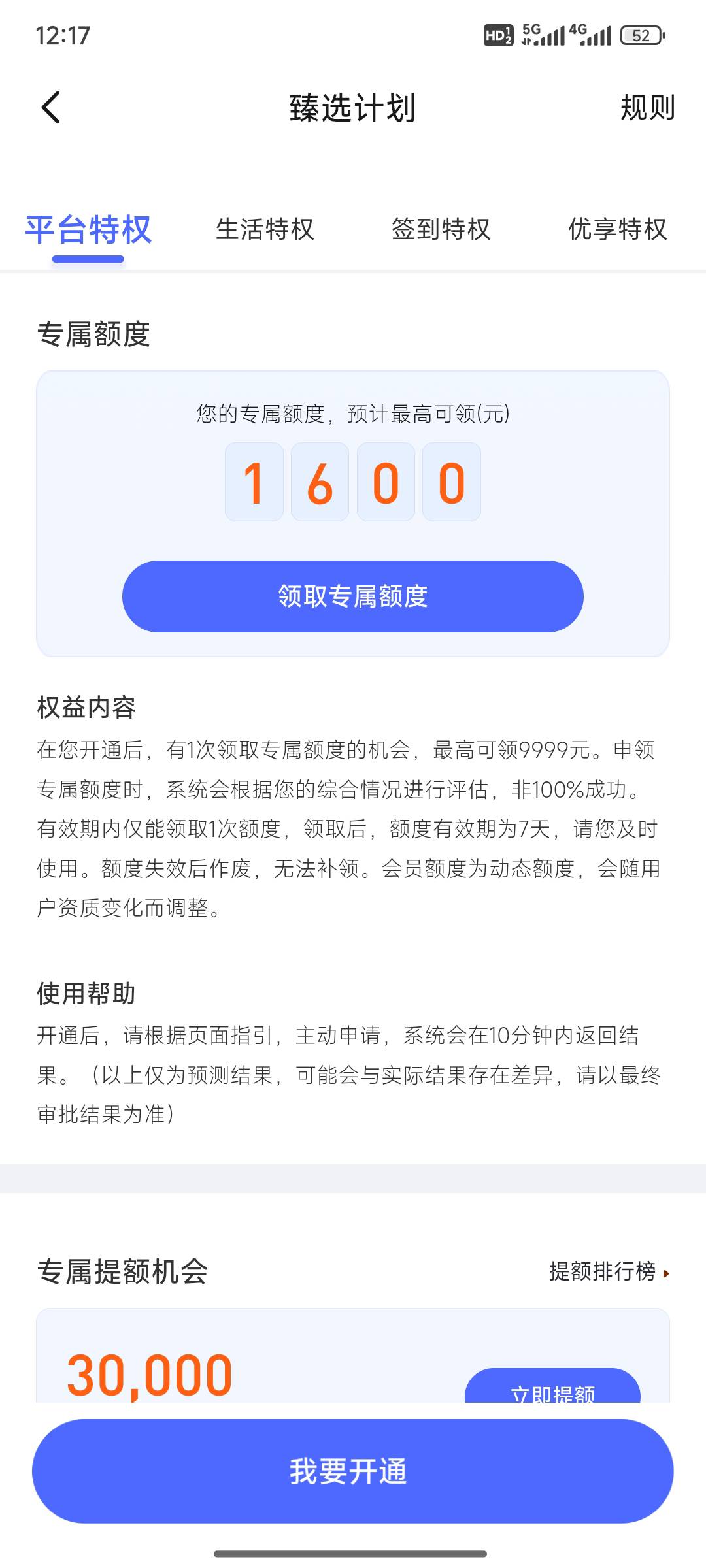 宜享花下过1500退过臻享计划,再开这个会提升额度么