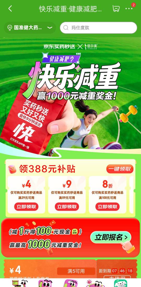 京东买药秒送健康减肥季赢减重奖金活动