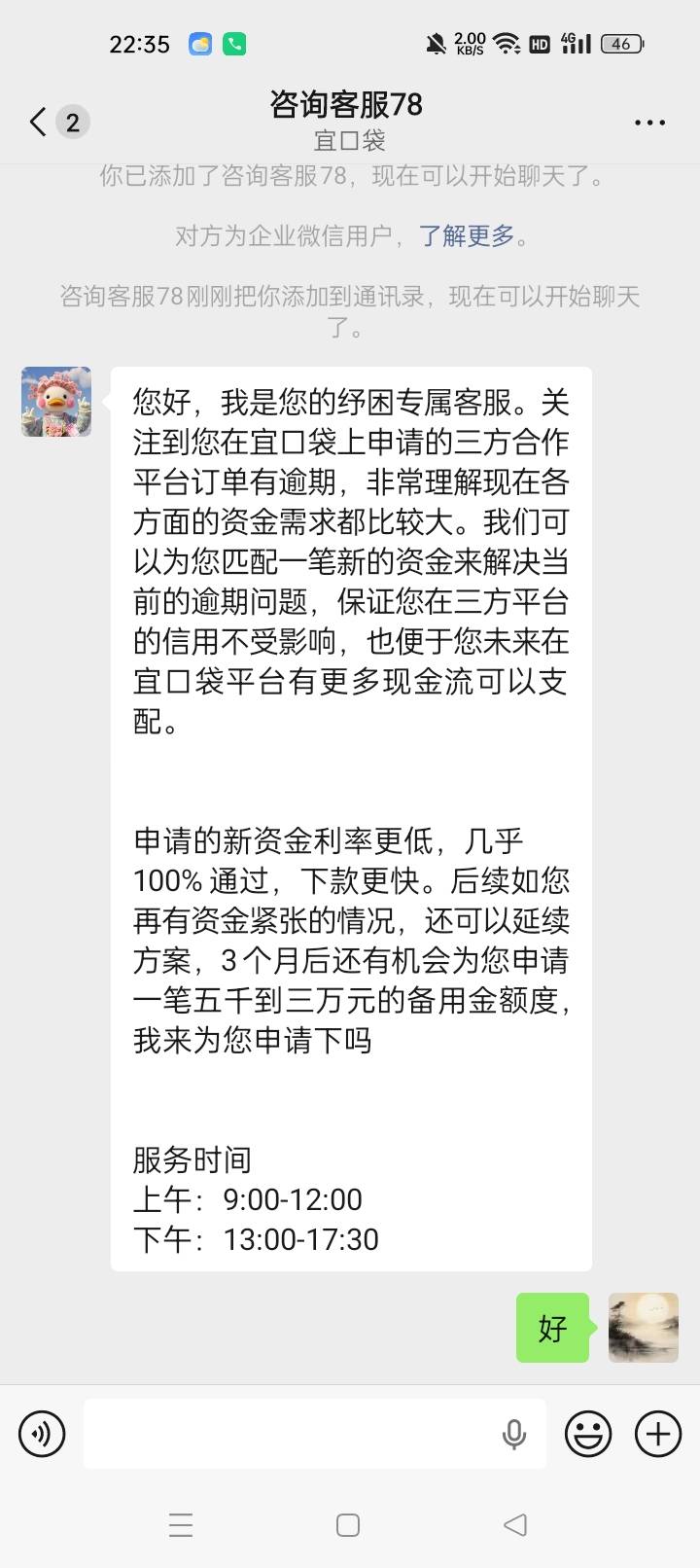 吾携清风揽星河 发表于 2026-03-27 22:41 咋加客服,我也逾期三十多天了