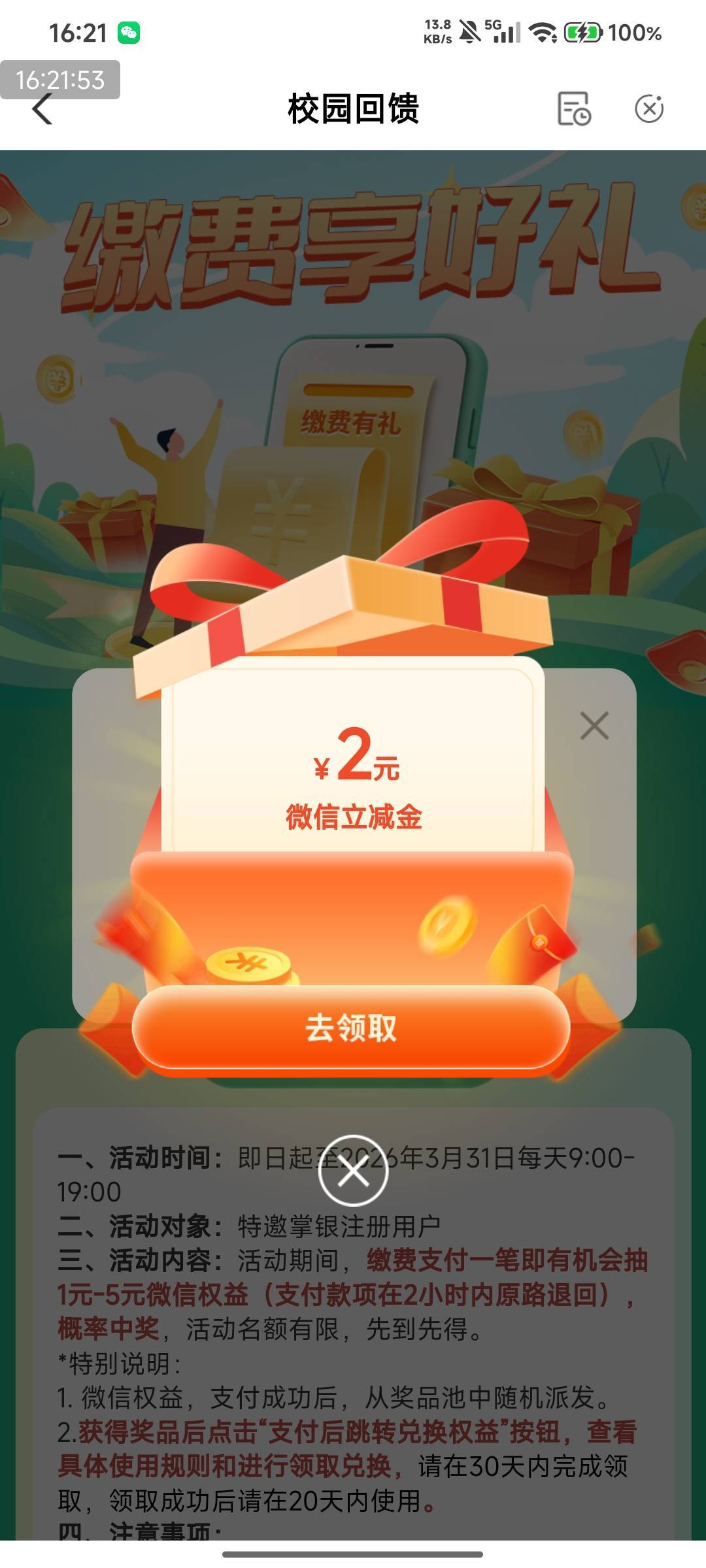 农行特邀用户校园回馈缴费享好礼活动