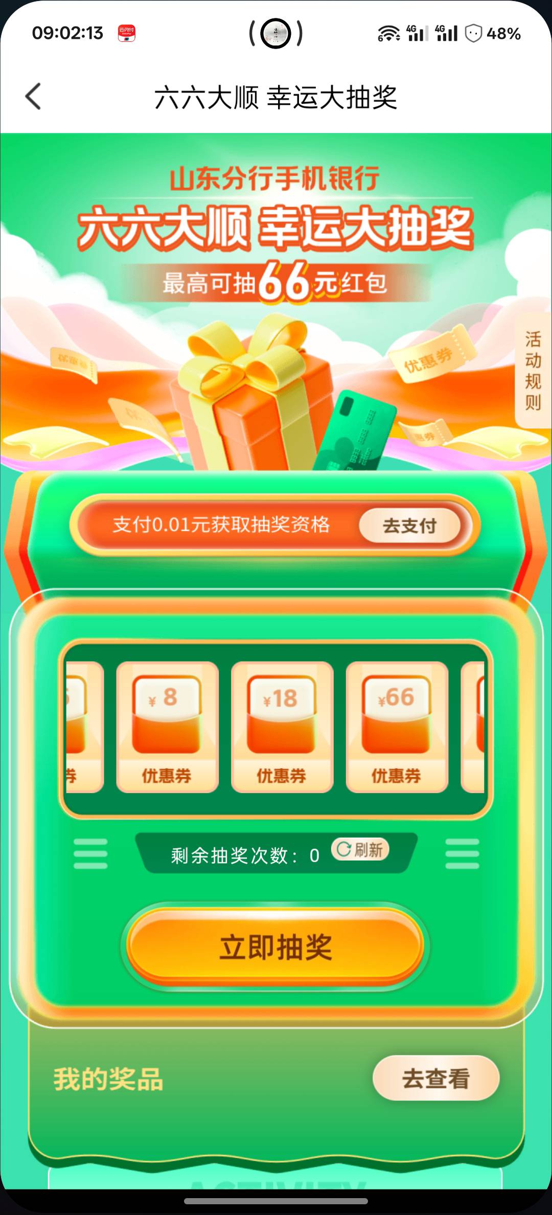 邮储山东六六大顺幸运大抽奖活动