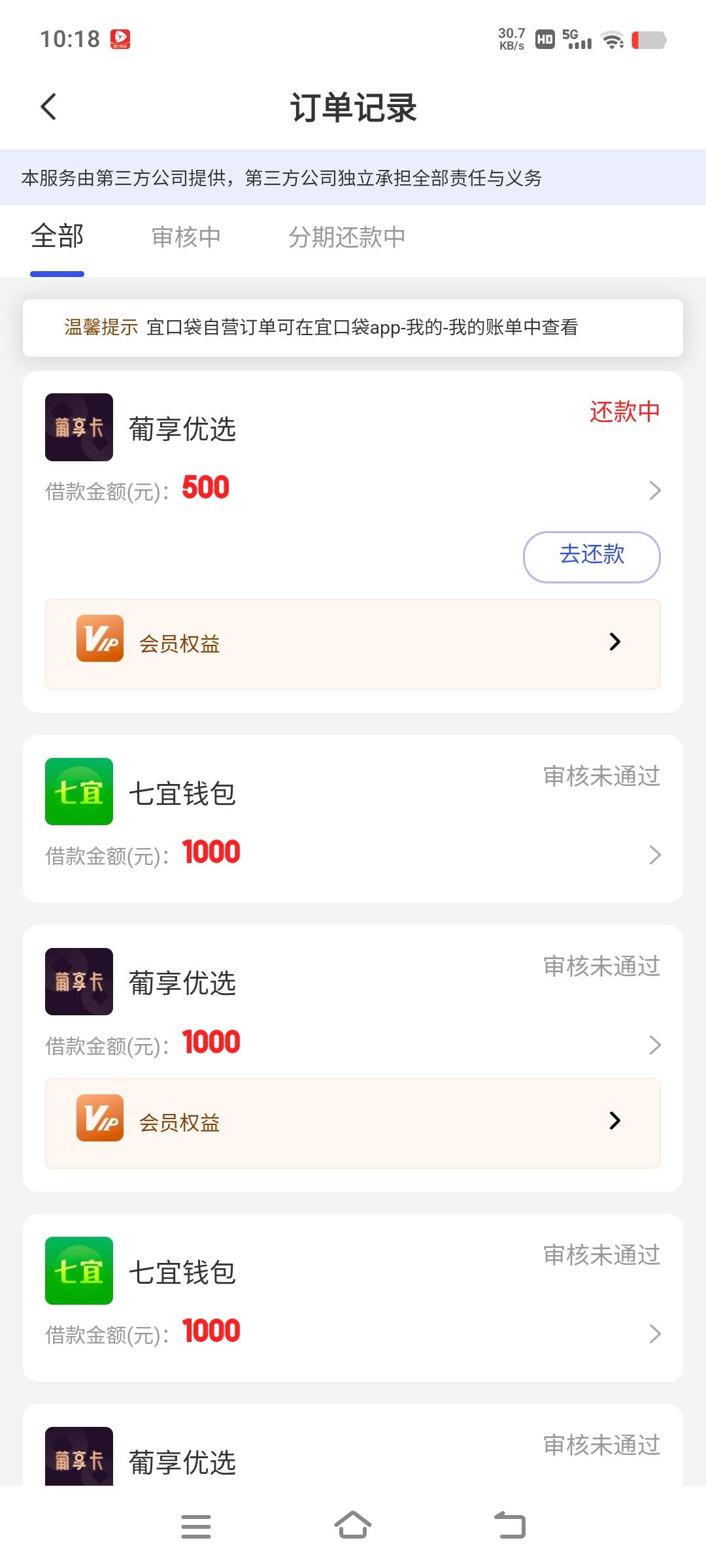 有征信是废了就这个下了四笔每笔都给会员费