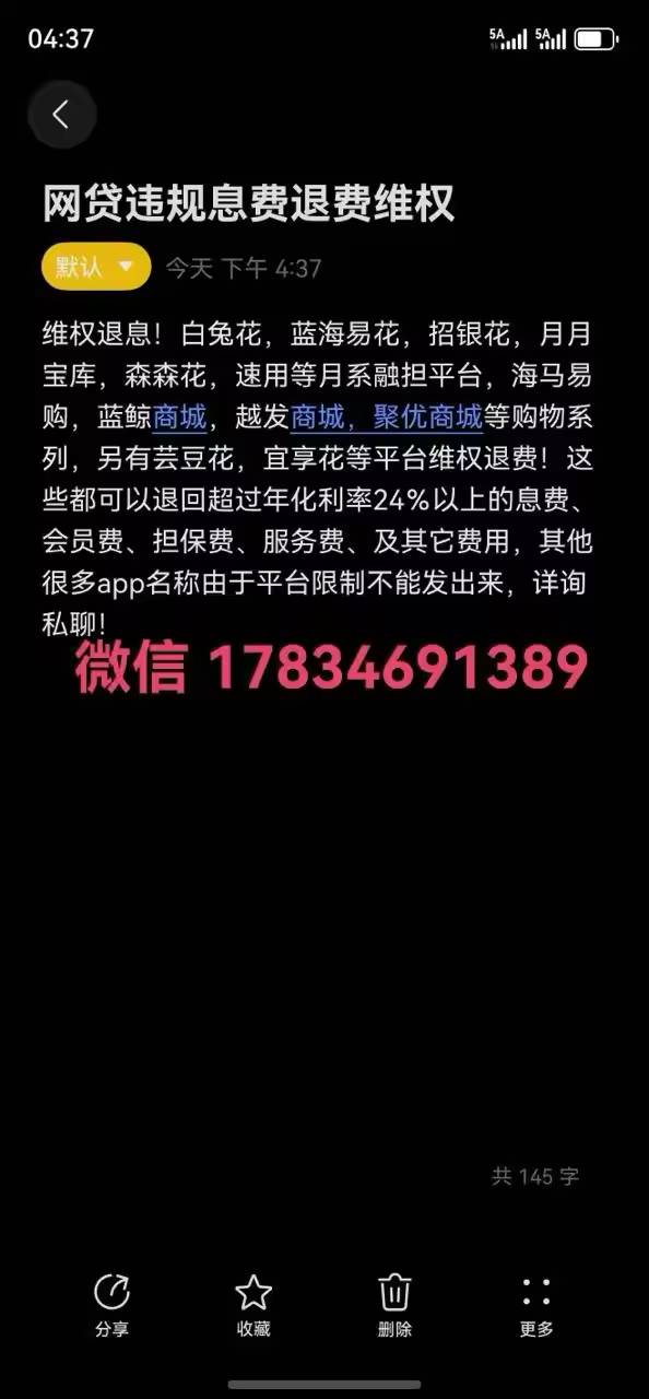 卡农官方合作网贷退息!海马易购,喜鹊易购等旅游卡商城,白兔花,蓝海易花,招银花,月月宝库,森森花,速用等月系融担平台,另有,桔多多,宜享花等平台维权退费!这些都可以退回超过年化利率24%以上的息费、会员费、担保费、服务费、及其它费用,其他很多app名称由于平台限制不能发出来,详询私聊!微信 17834691389