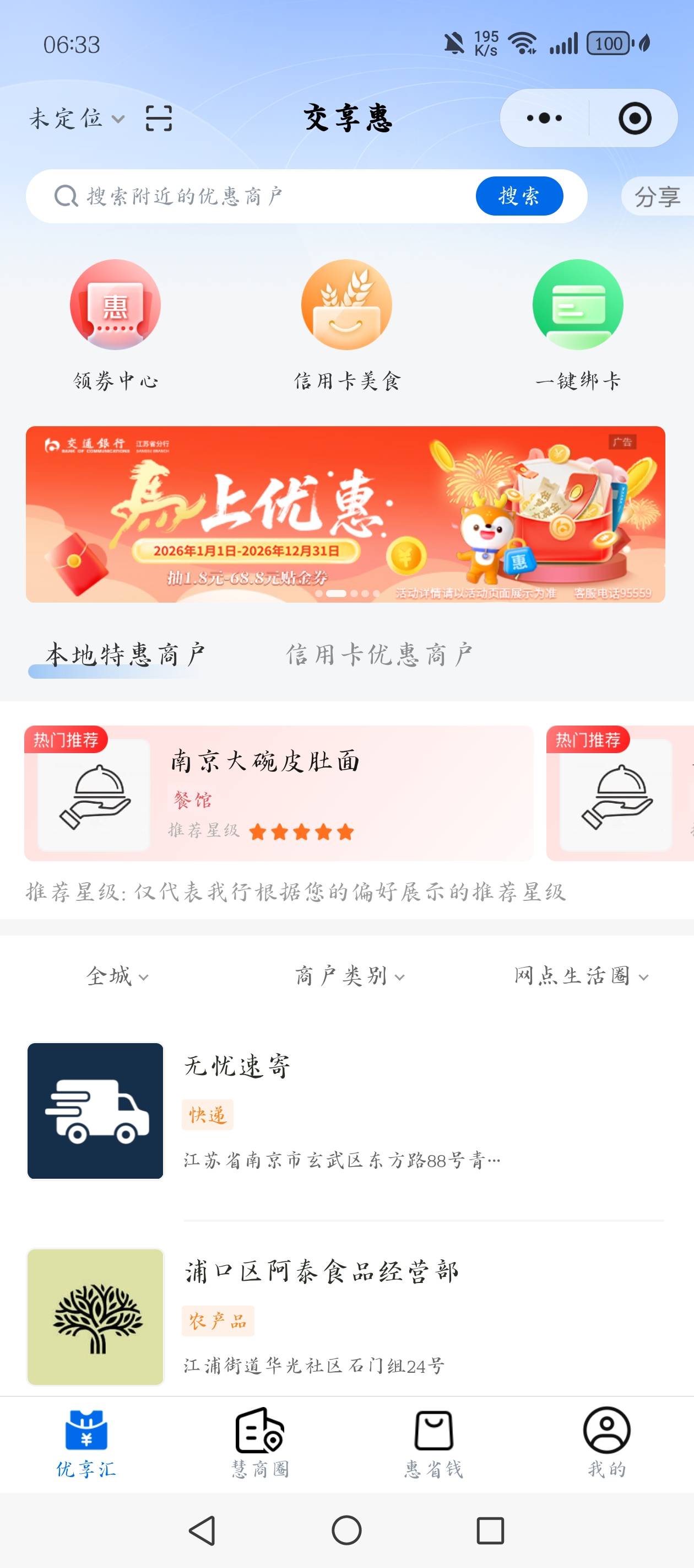 交行微信小程序南京交享惠更新,低保,得有卡