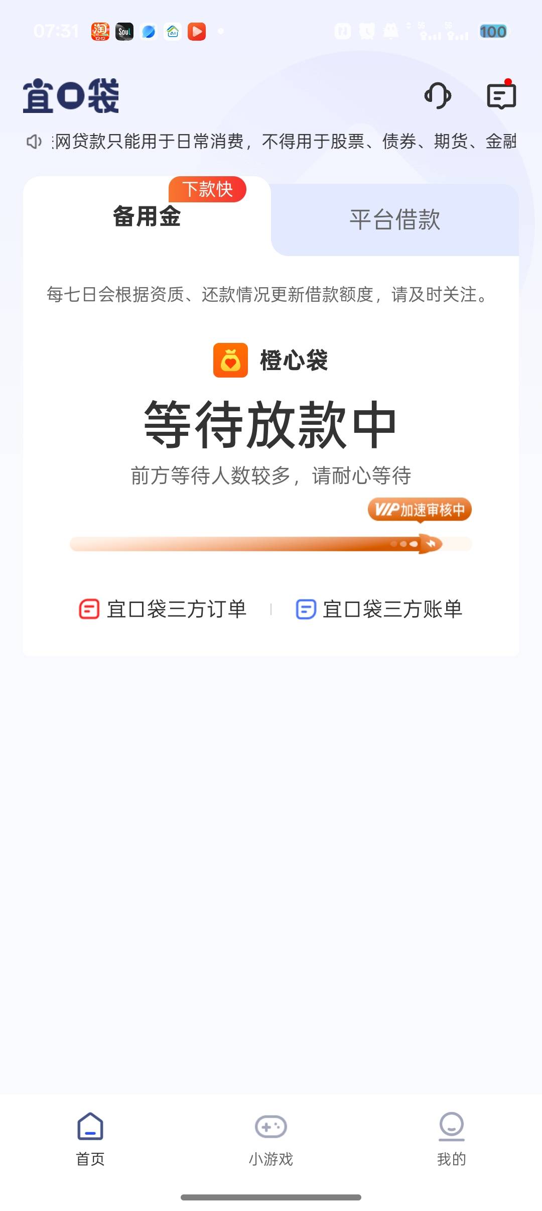 一样滴25号到今天没放。宜口袋28号还款日一期逾期起走。1日2号还有本体1笔,橙心贷两笔。不放就逾期起走