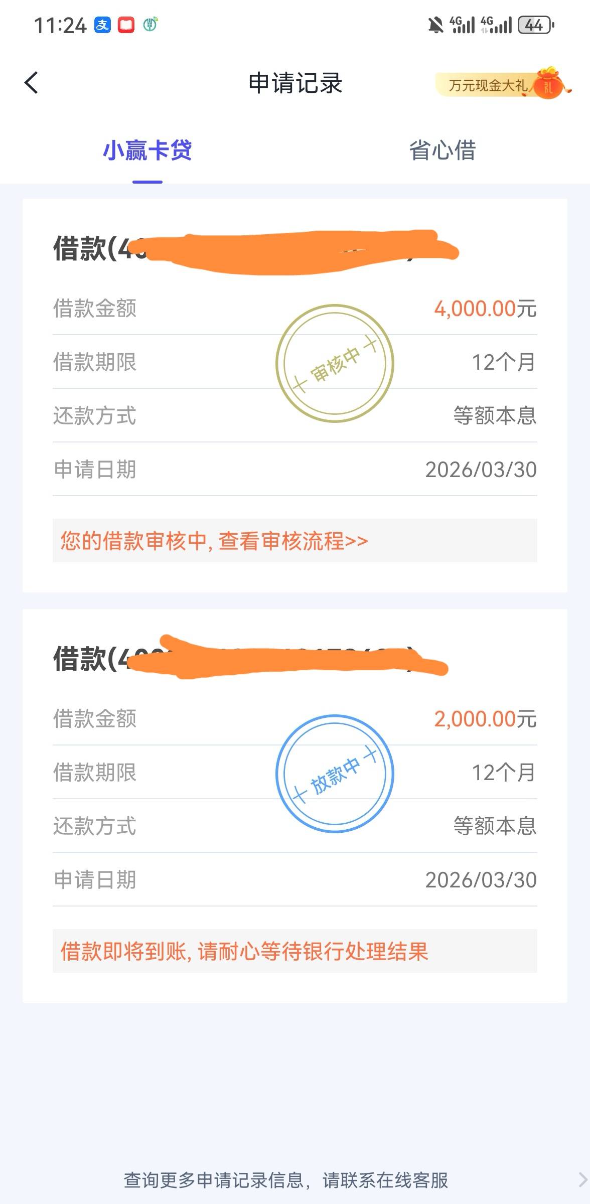 下款了一个2000的估计扣的89块,4000那个审核了117块,这东西有退过的吗