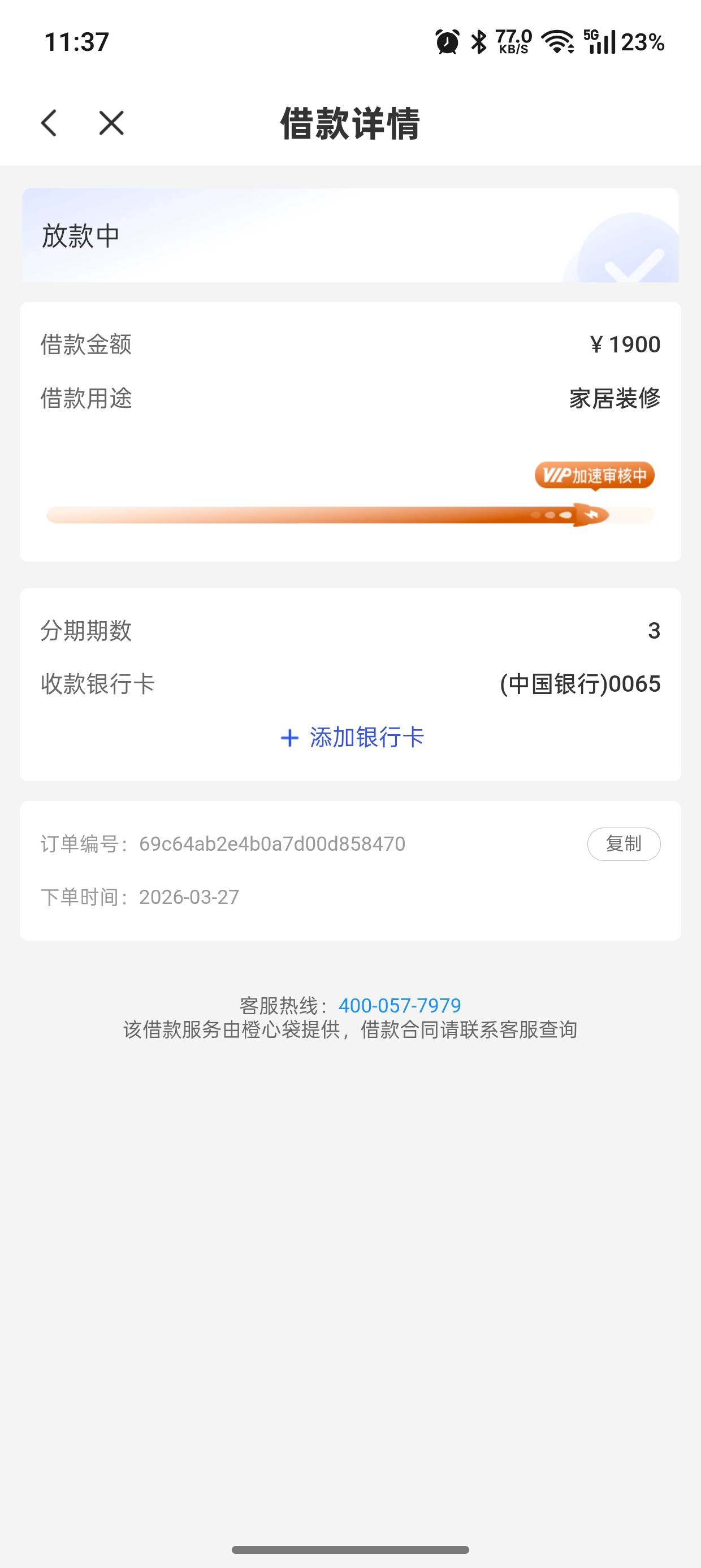 橙心贷放款中三天了问了客服说这段时间系统繁忙还有希望吗27号还款日借的