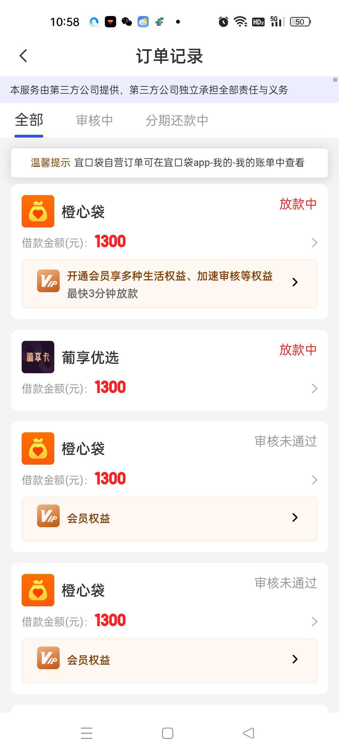 从3000调整额度变成1300了,现在不再显示审核中,显示放款中了