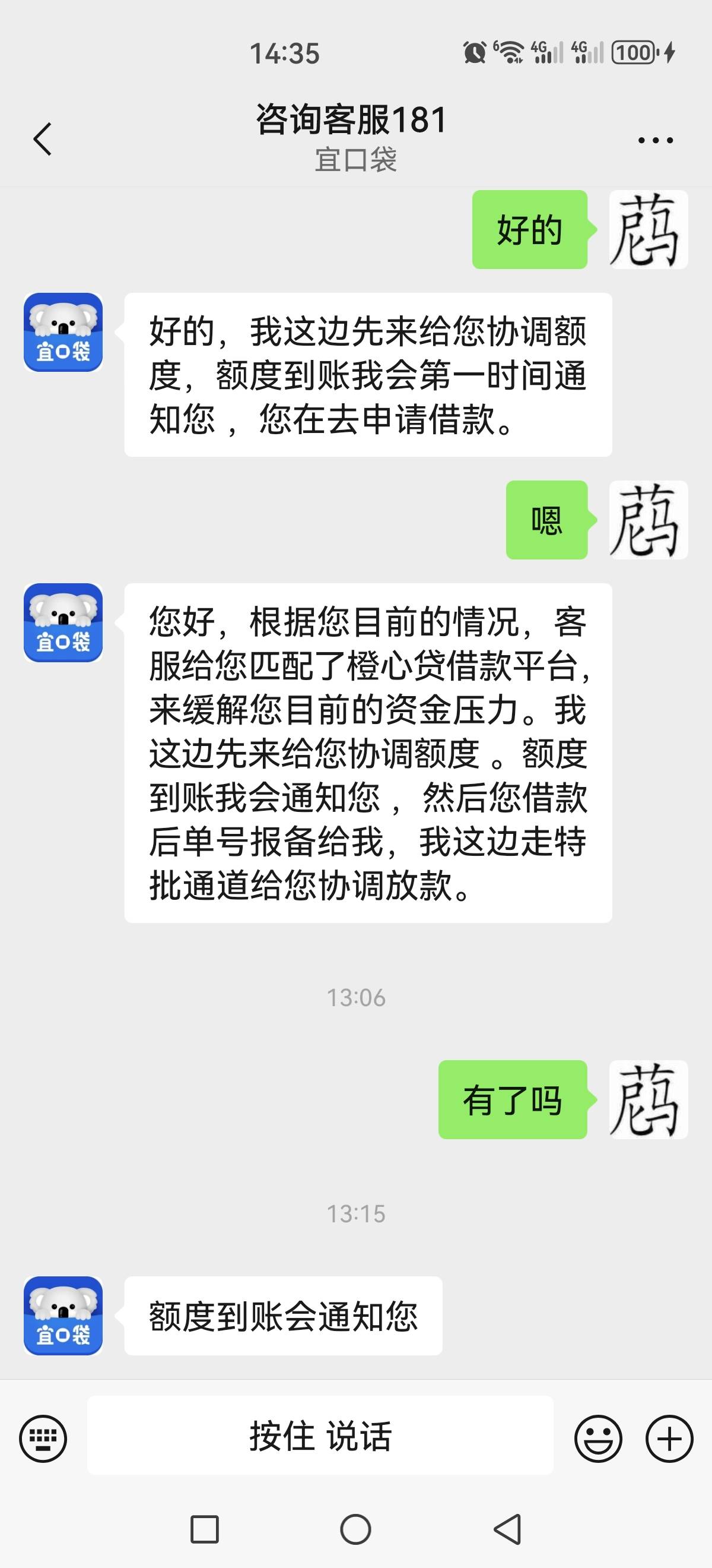 我这专项客服头像是女的 我都把78发给他看了 他还不给我匹配额度
