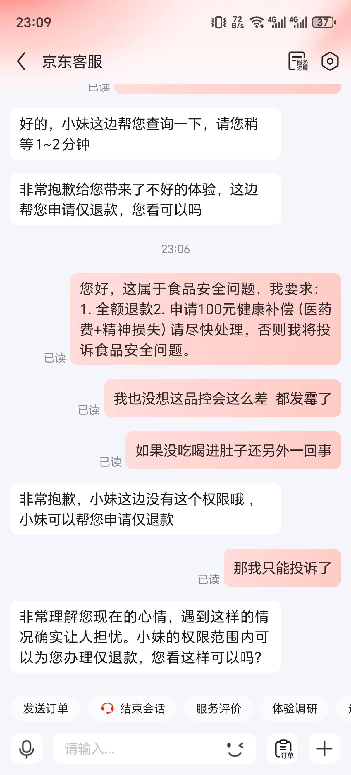 是在京喜自营买的  找京东客服她说只能仅退款