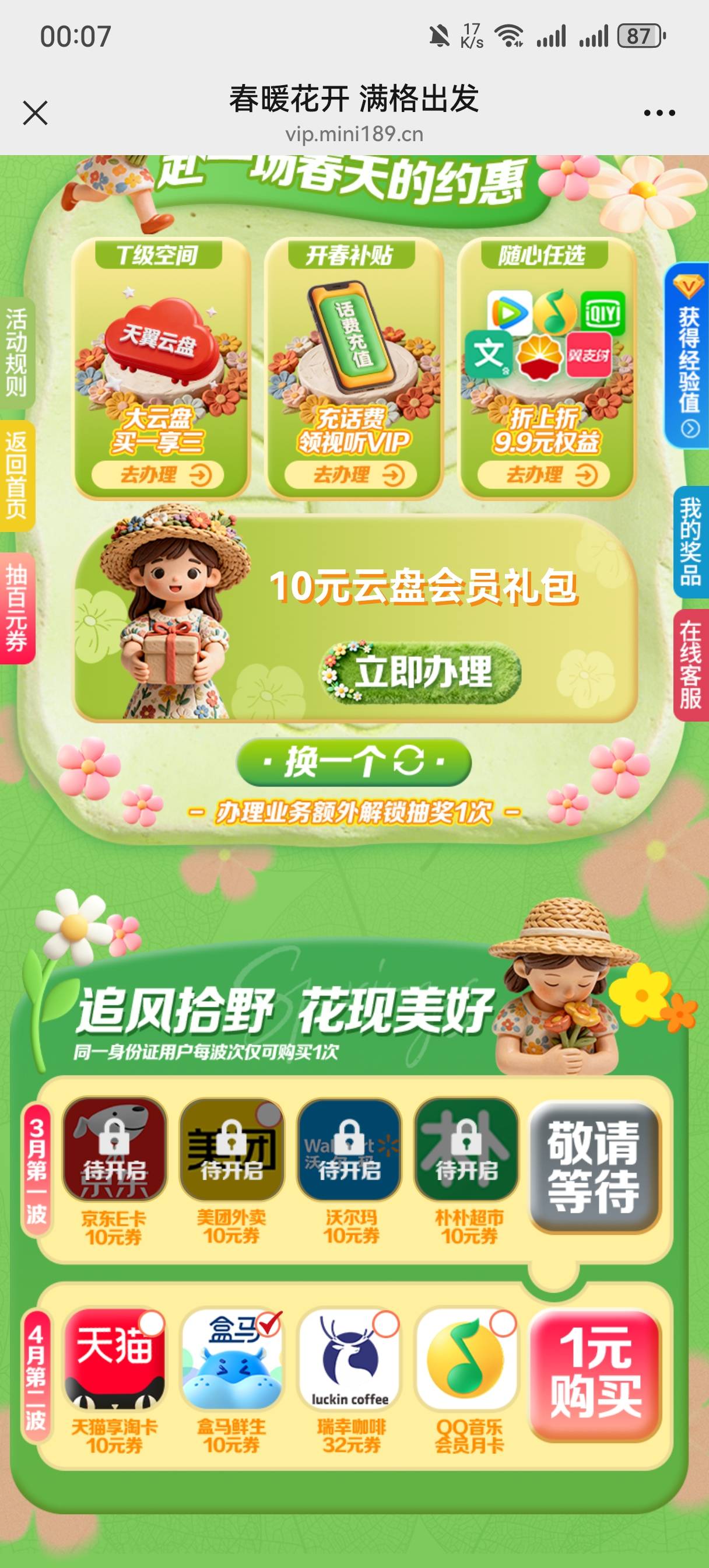 广州电信春暖花开满格出发办理业务解散抽奖活动