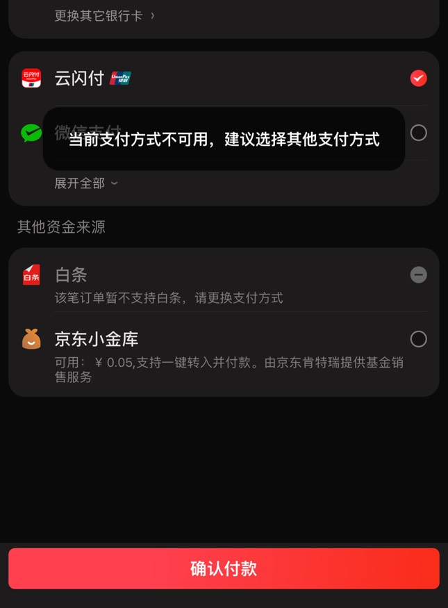 京东不能跳转云闪付了吗?为啥显示支付方式不可用?