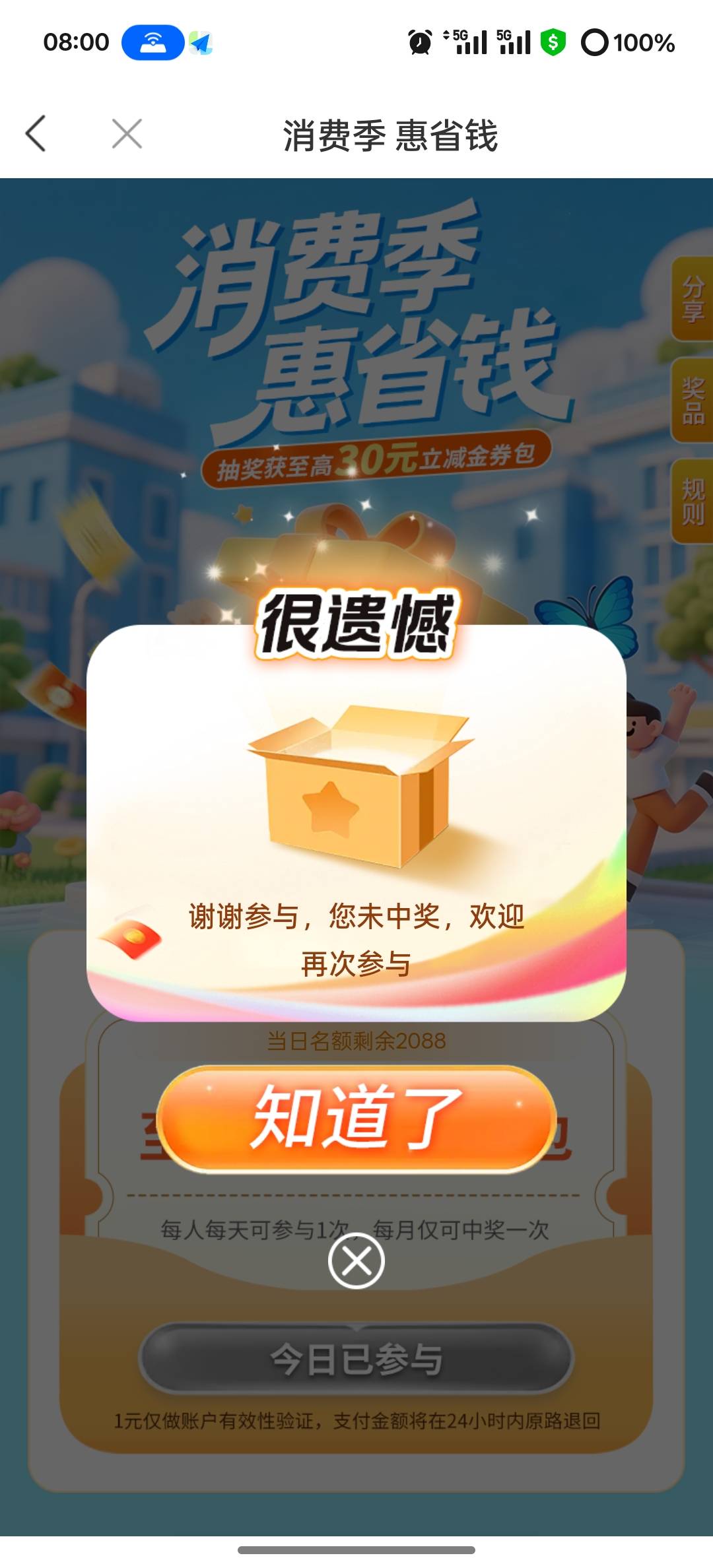 徽商银行消费季惠省钱抽奖活动